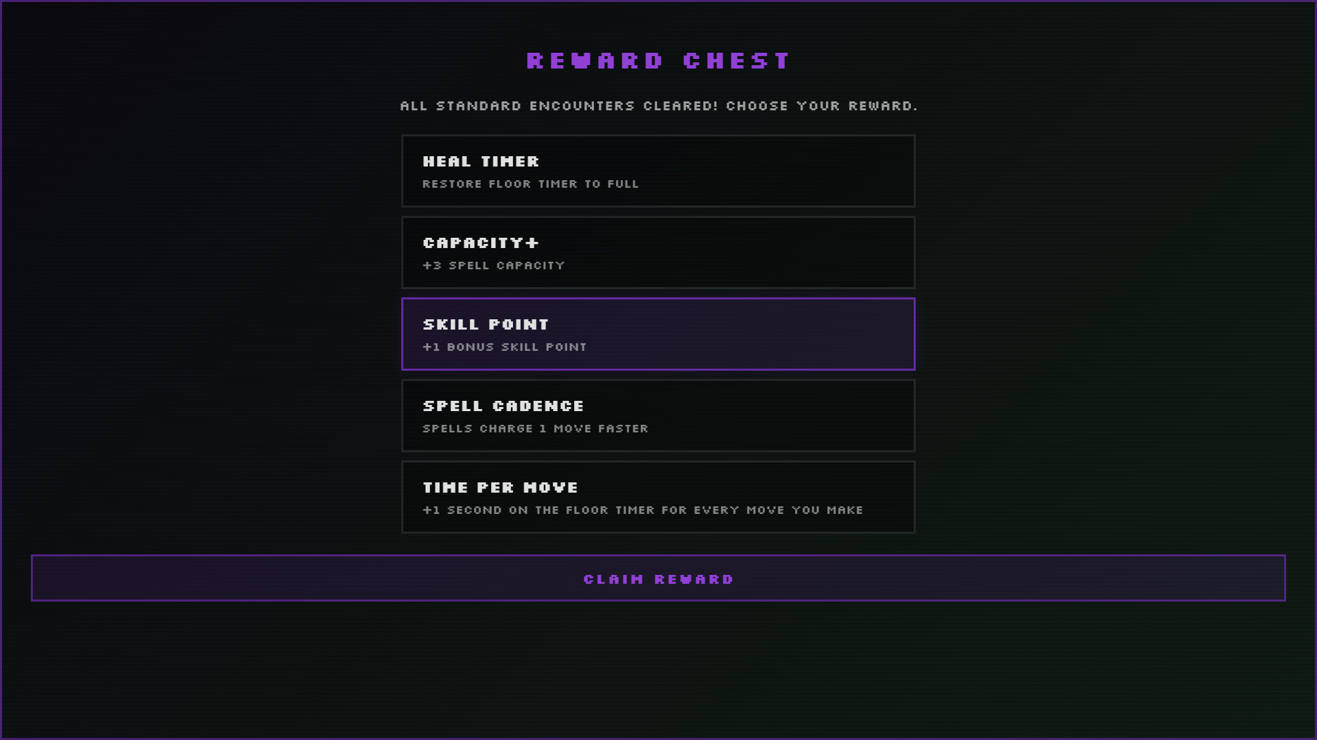 The centerpiece. Climb a tower of increasingly difficult encounters across 80+ unique enemy and boss types. Earn spell points, build your spell tree, and find the run that cracks the top floor.