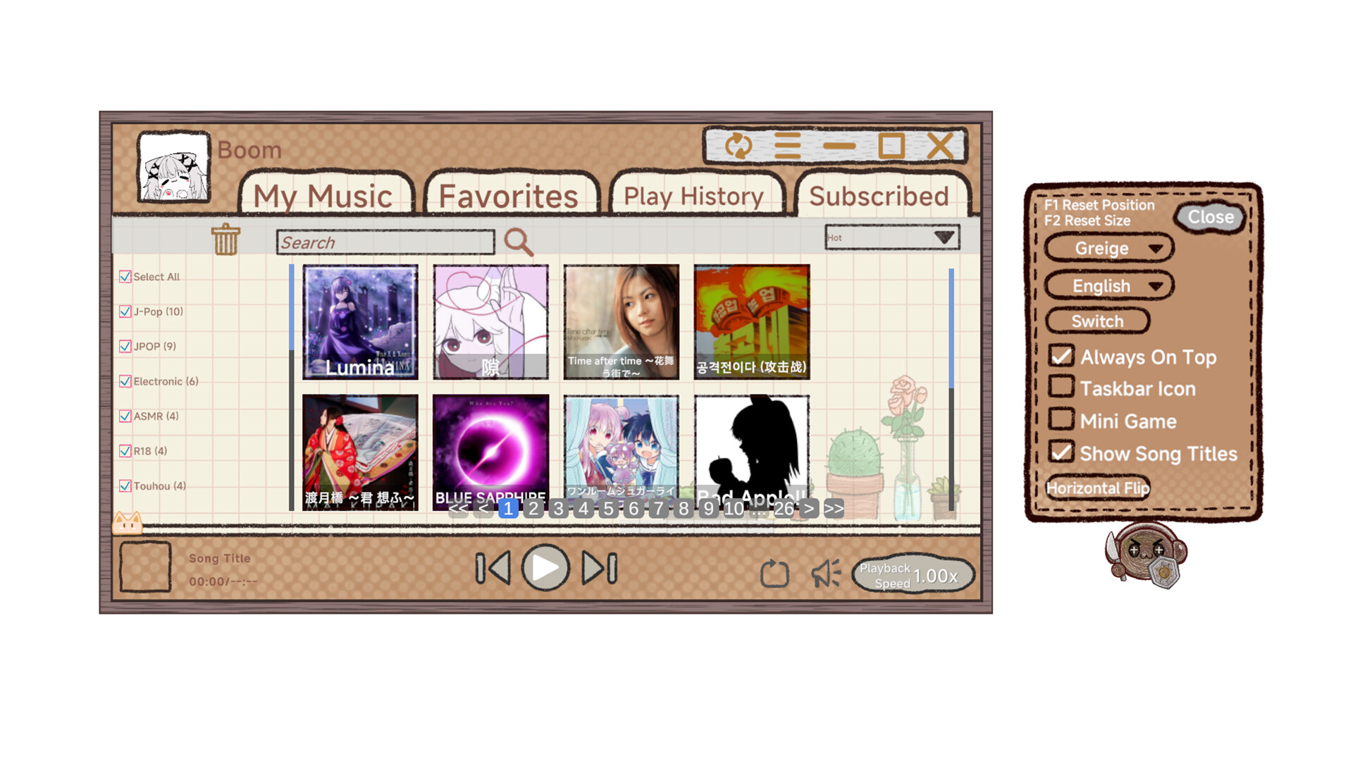 Встроенный полноценный модуль управления воспроизведением музыки с поддержкой добавления треков в избранное, просмотра истории воспроизведения, сортировки и систематизации по альбомам. Вы можете свободно управлять своими личными плейлистами, погружаясь в мир любимой музыки вместе со слаймом;