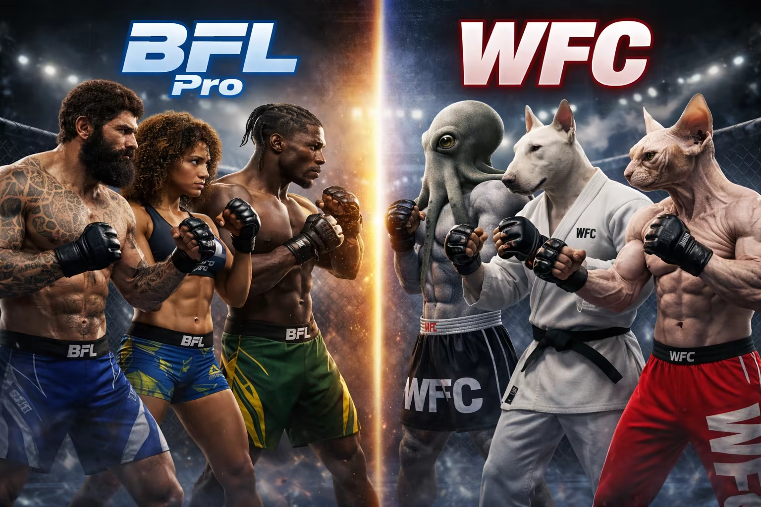 There are two leagues: BFL Pro with human fighters and WFC with beast fighters.