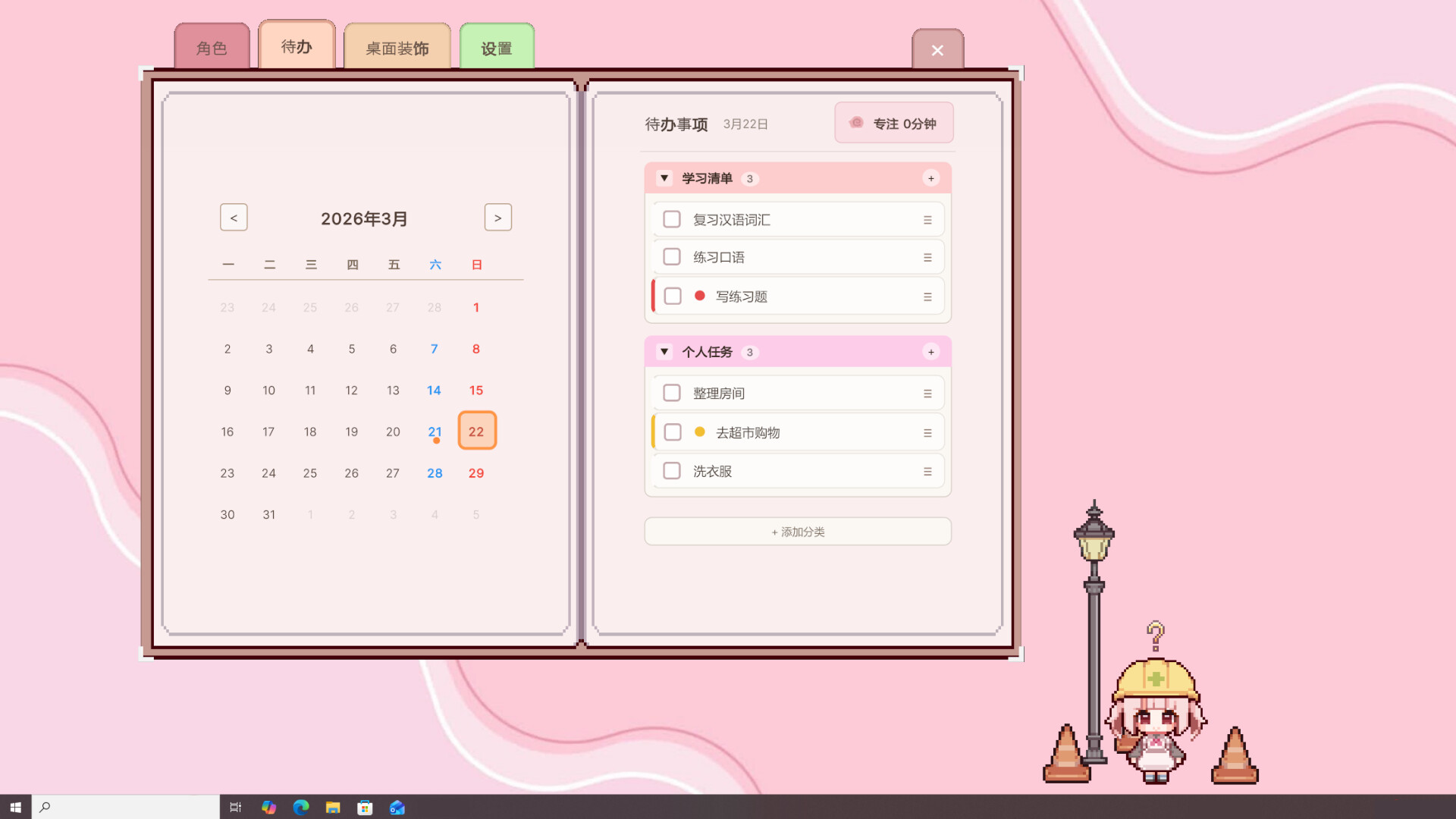 Collect pixel art and freely decorate the background where Haru lives.