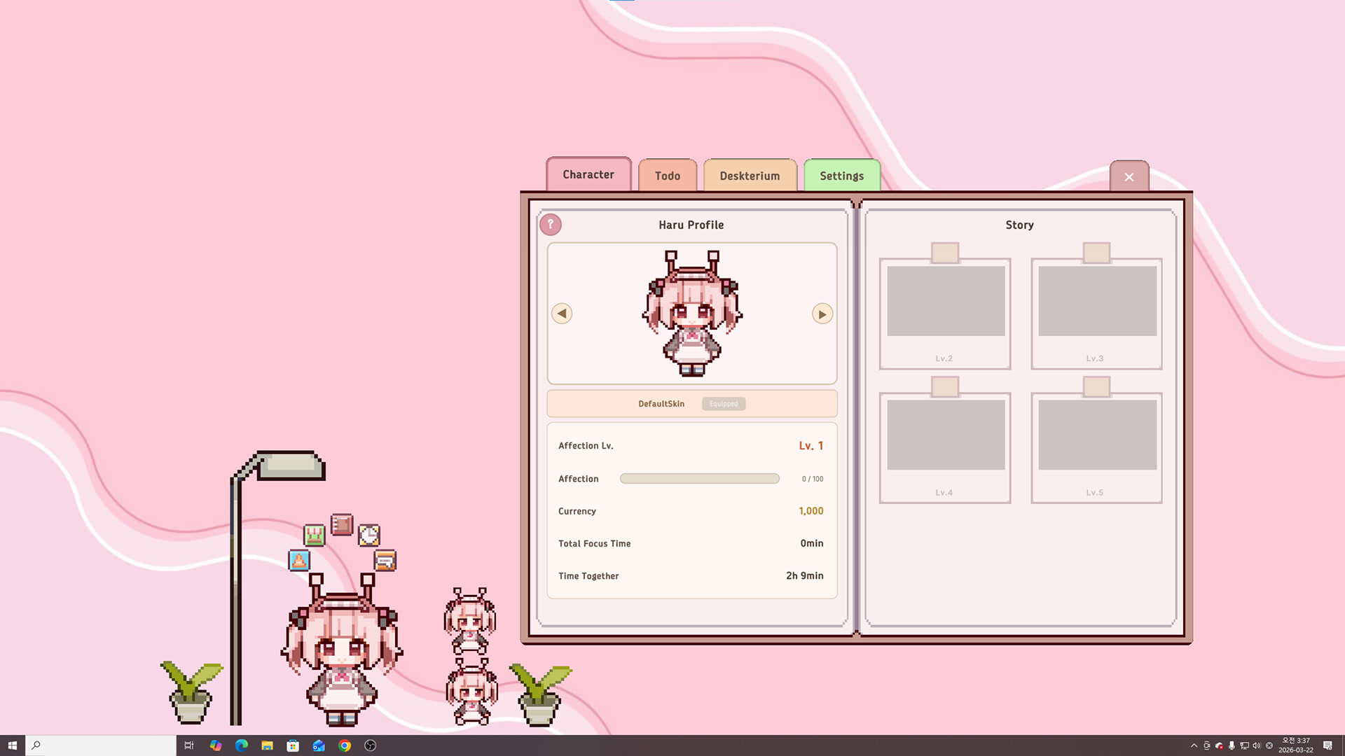 Endless hours at your desk, staring at your monitor until Haru appears by your side. More than a simple desktop companion, she helps you stay focused, keeps track of your time, and talks with you through her built-in AI. Customize your desktop and share your space with Haru