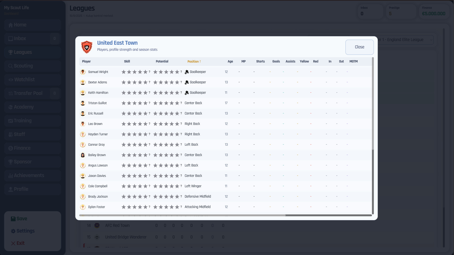 Discover hidden gems, develop their potential, and sell them for profit. In My Scout Life, you're the scout — finding young talents before anyone else does. Build your reputation, grow your network, and dominate the transfer market!