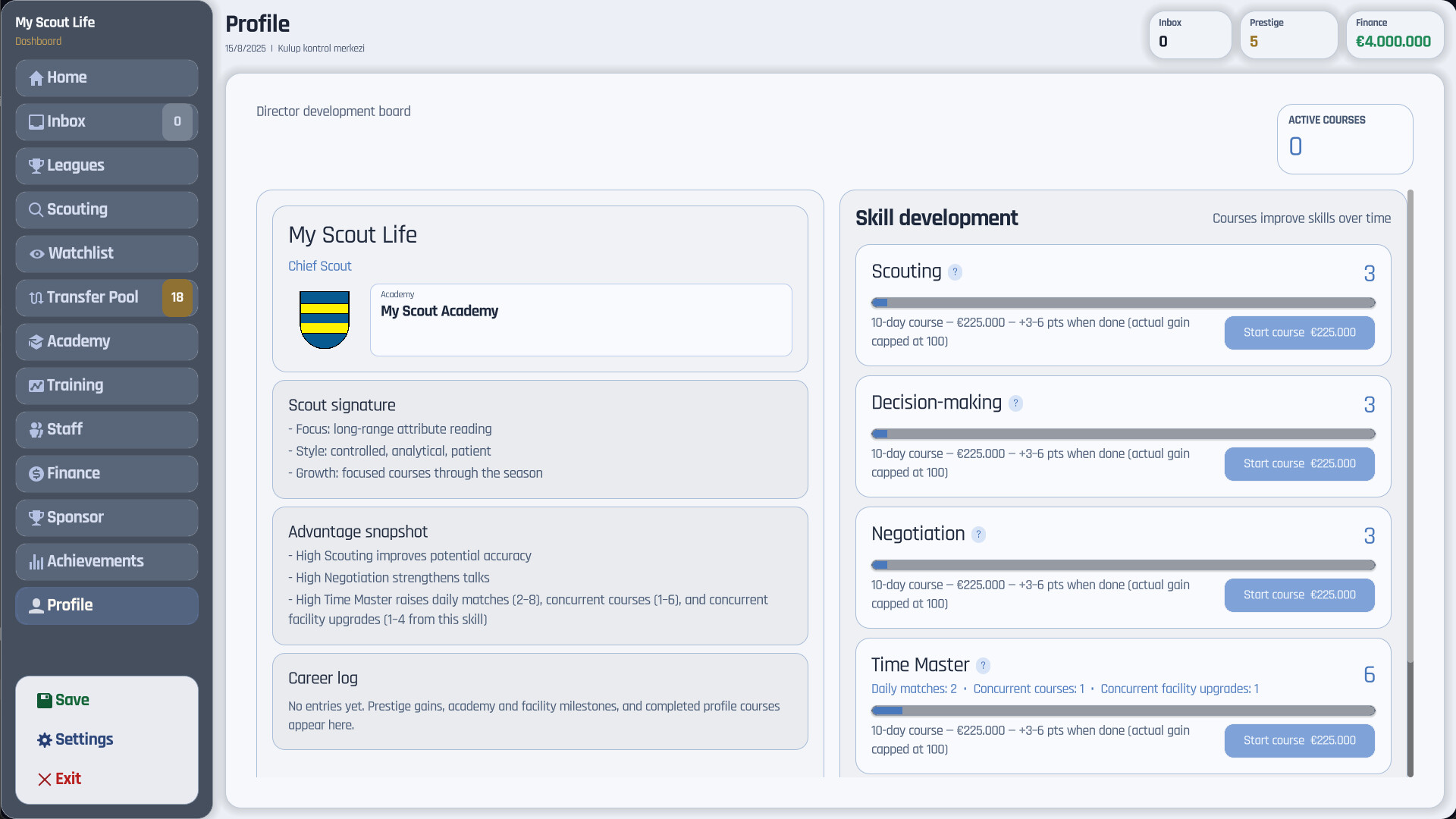 Discover hidden gems, develop their potential, and sell them for profit. In My Scout Life, you're the scout — finding young talents before anyone else does. Build your reputation, grow your network, and dominate the transfer market!