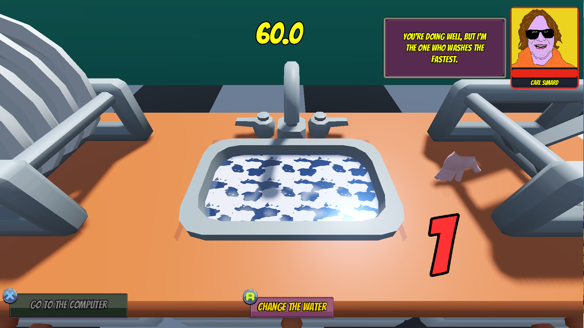 Using the Super Sink 3000, teleport your clients’ dirty dishes straight into your sink and complete a wide variety of absurd yet satisfying contracts.