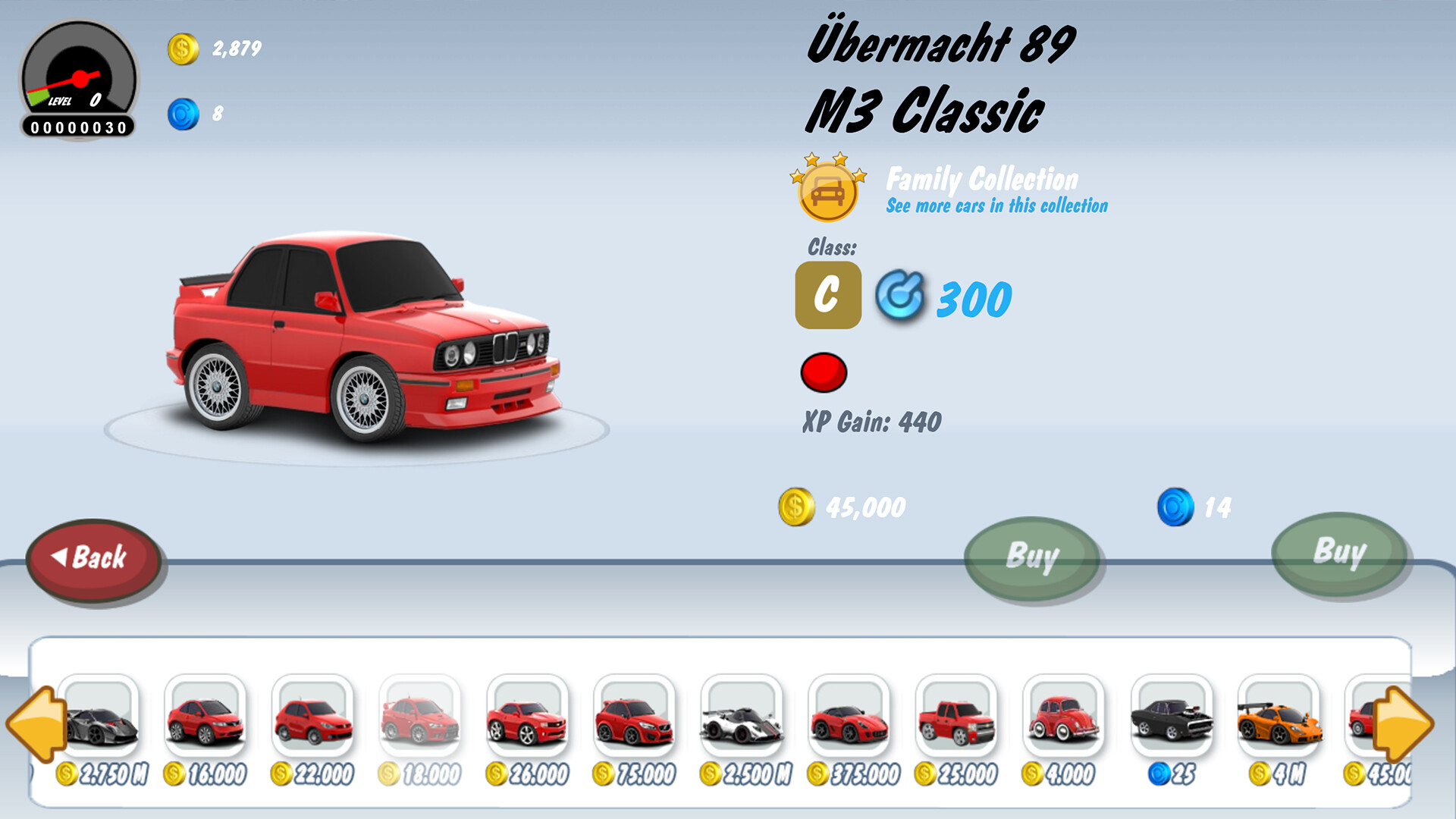 In Car Down, players can acquire new vehicles, customize their appearance, and display their collection in their personal garage. The goal is to grow your collection, unlock new cars, and improve your garage as you progress.