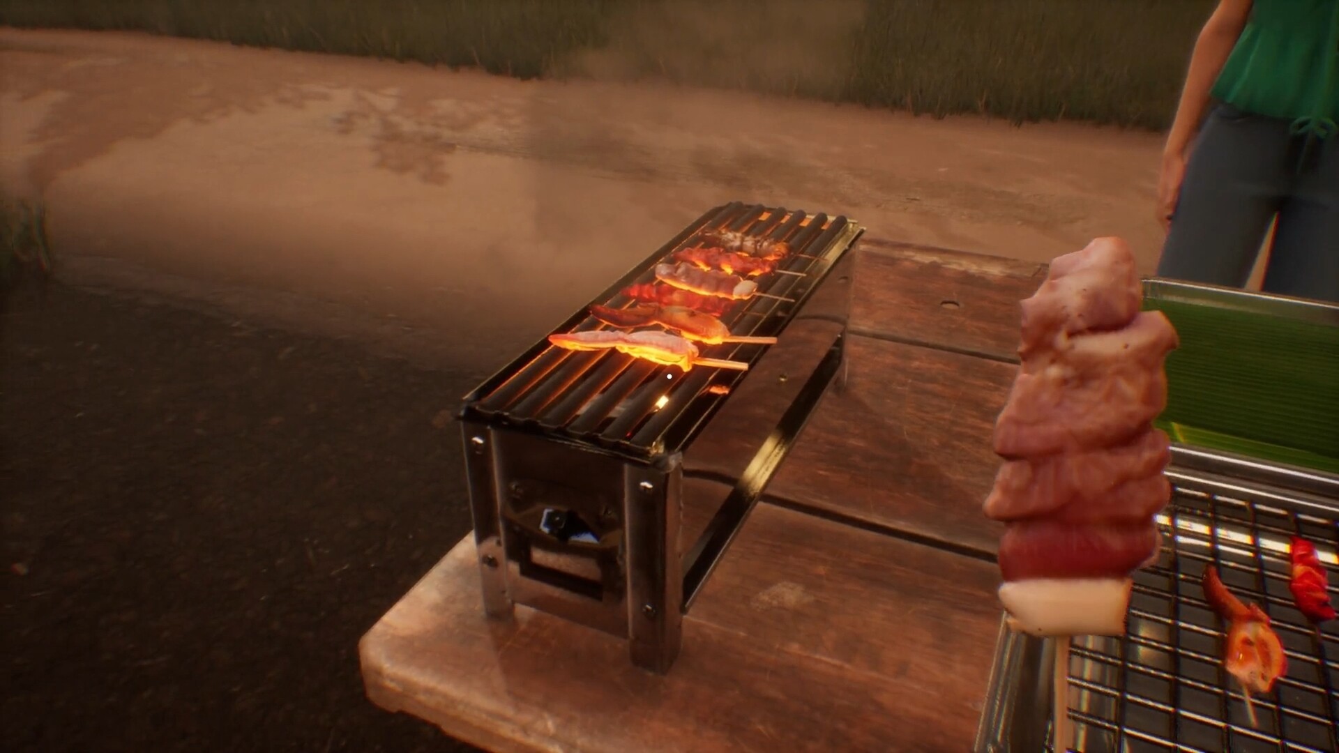 The heart of your visit revolves around the family’s small street food stall. You must help your grandmother prepare and sell Grilled Meat Skewers with Sticky Rice to the locals.
