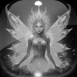 The background images and fairies pictures are pre-rendered AI art