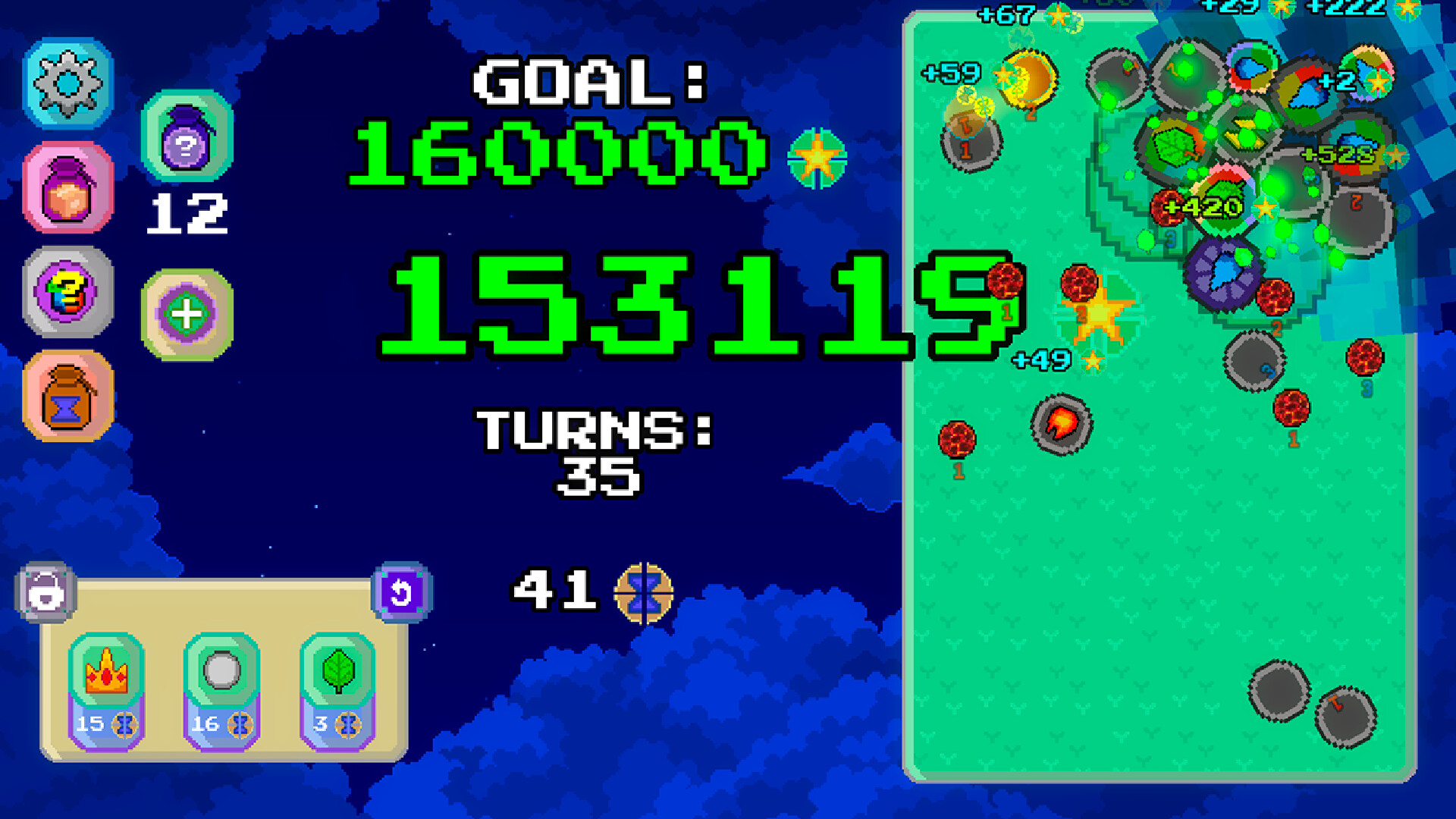 To keep the gameplay fresh and exciting, tokens also feature unique abilities shown in the background. Also there are passive abilities to upgrade your elements, making them longer, bigger, stronger... And for providing general buffs like reducing shop prices, granting extra turns, boosting specific stats...