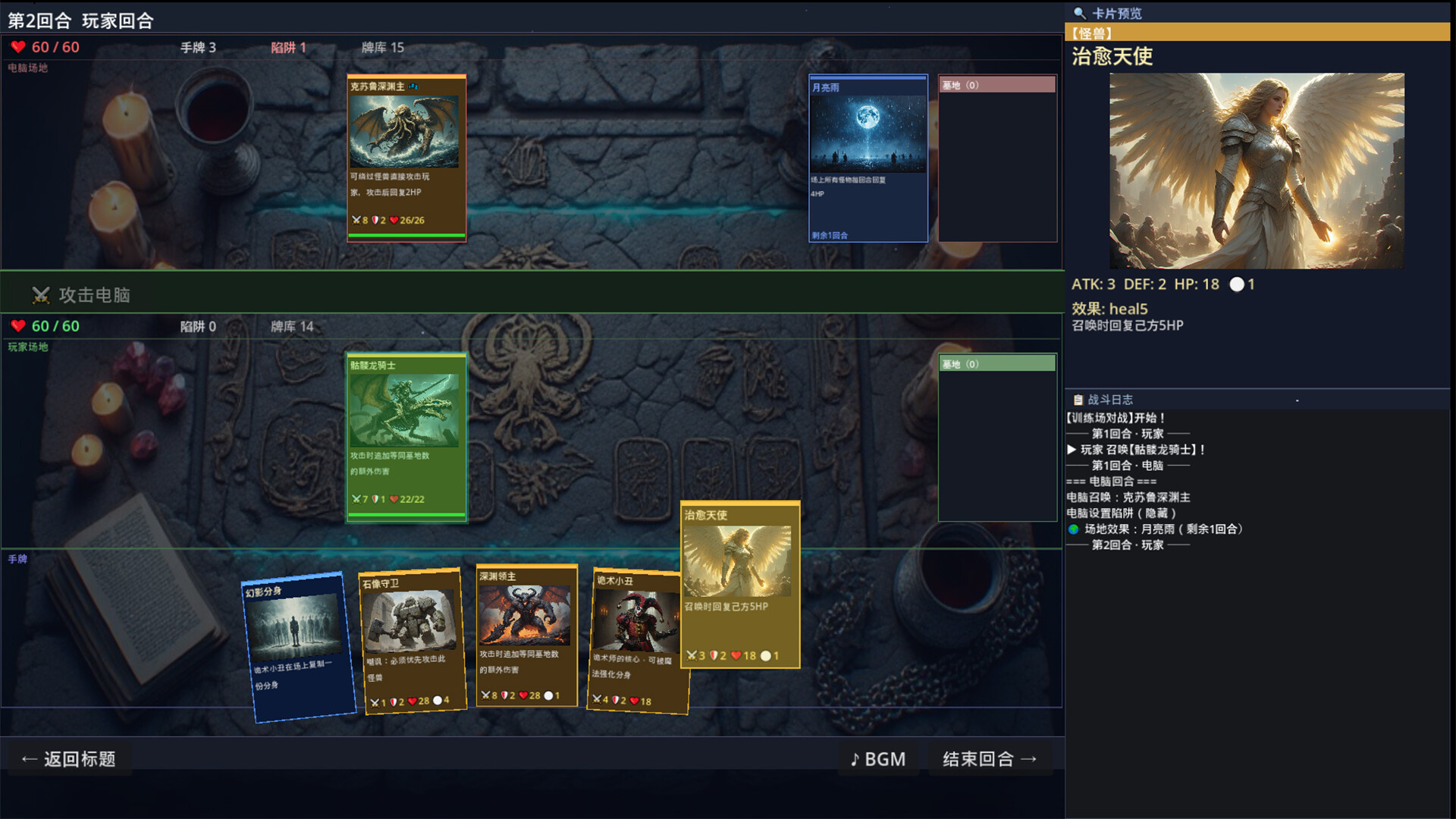 This is a fast-paced card battle game focused on tight decision-making. Build a refined deck of only 20 cards, and make critical choices under limited resources and unpredictable conditions—every move can shape the outcome of the battle.