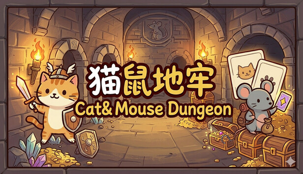 Cat & Mouse Dungeon is a light roguelike that blends dungeon exploration, backpack deckbuilding, and chaotic turn-based card battles.