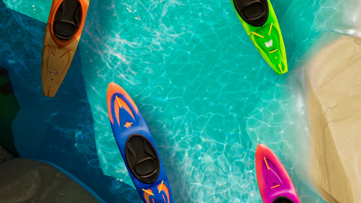Do you like land-based sports but can’t stand being away from your kayak? We neither. Play soccer, tag, and other minigames on water. Of course, with friends.