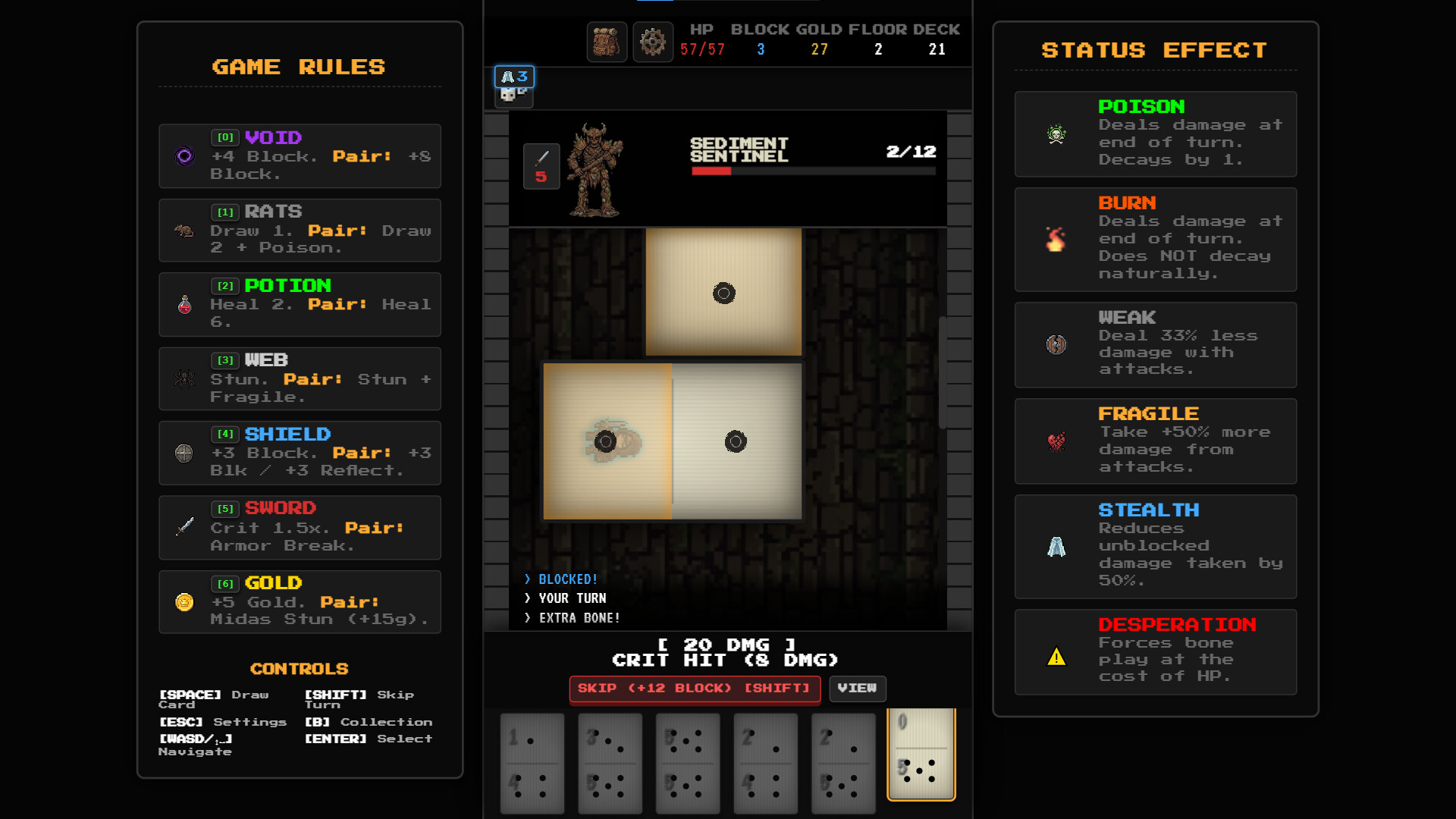 • Play it Desperate: Run out of valid moves? Your bones will glow red. You can force a piece onto the board with a "Desperation Play," but it’s going to cost you your own HP.