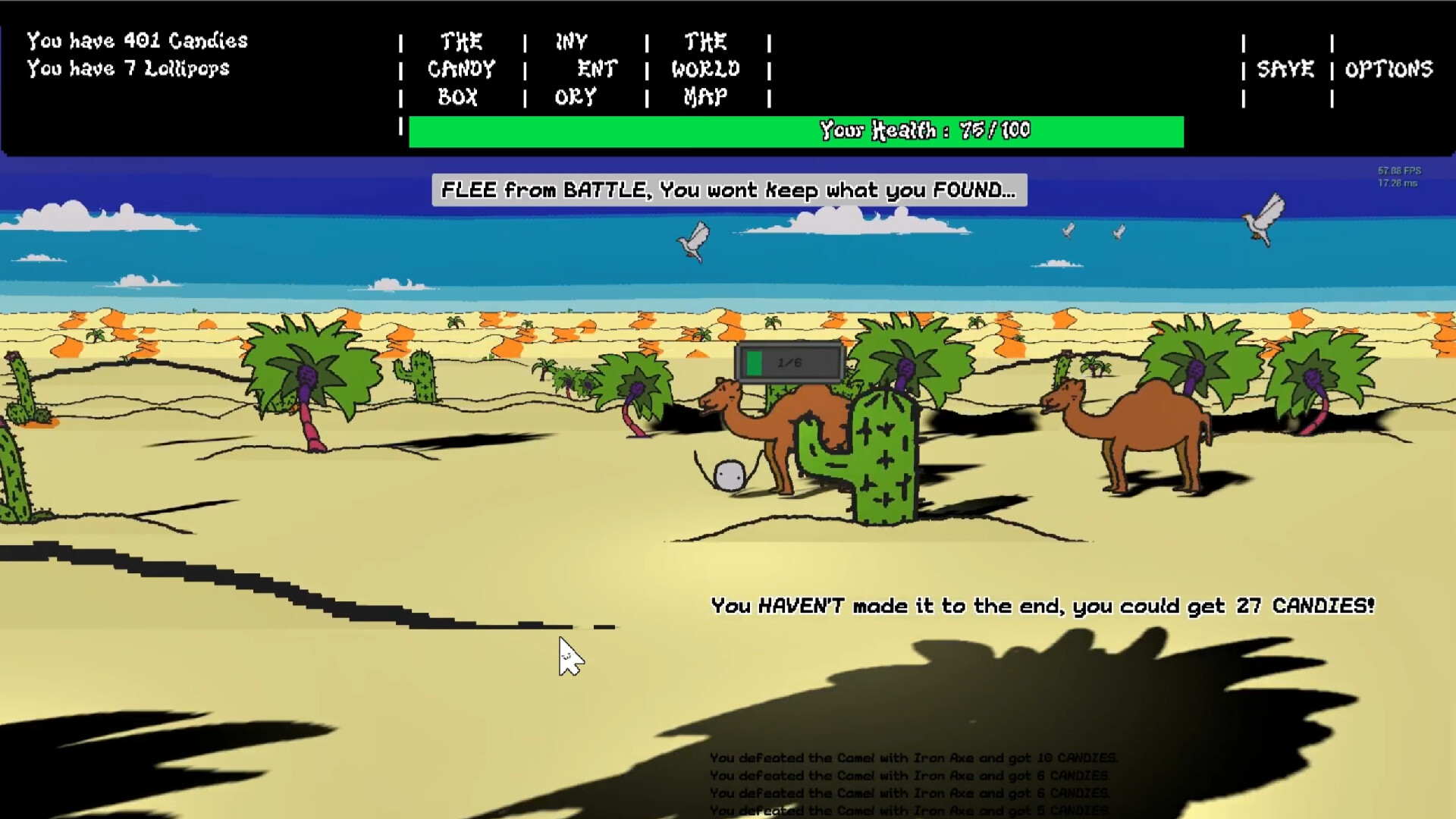You find yourself in a small village, candy slowly filling your pockets. Eat them? Throw them away? or maybe, use them to buy yourself stronger gear?