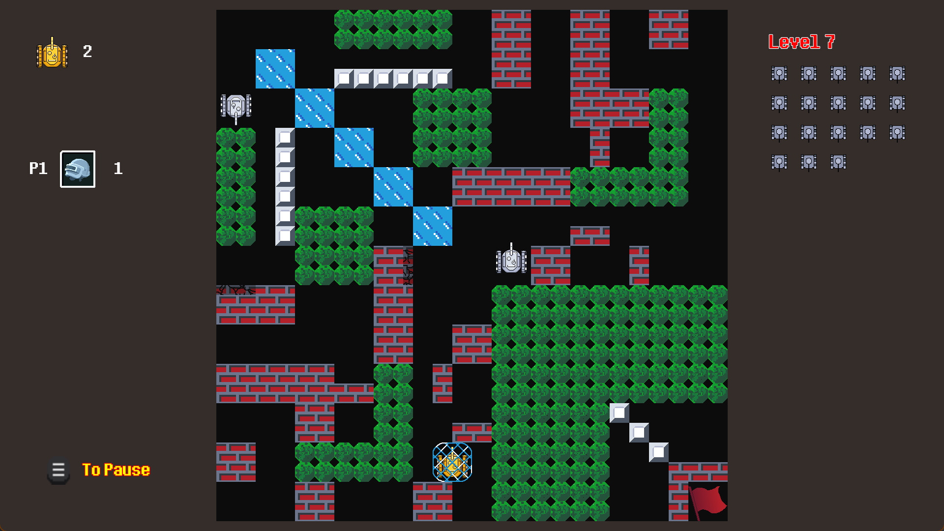 • Water:​ Tanks cannot traverse, but bullets can pass over it.