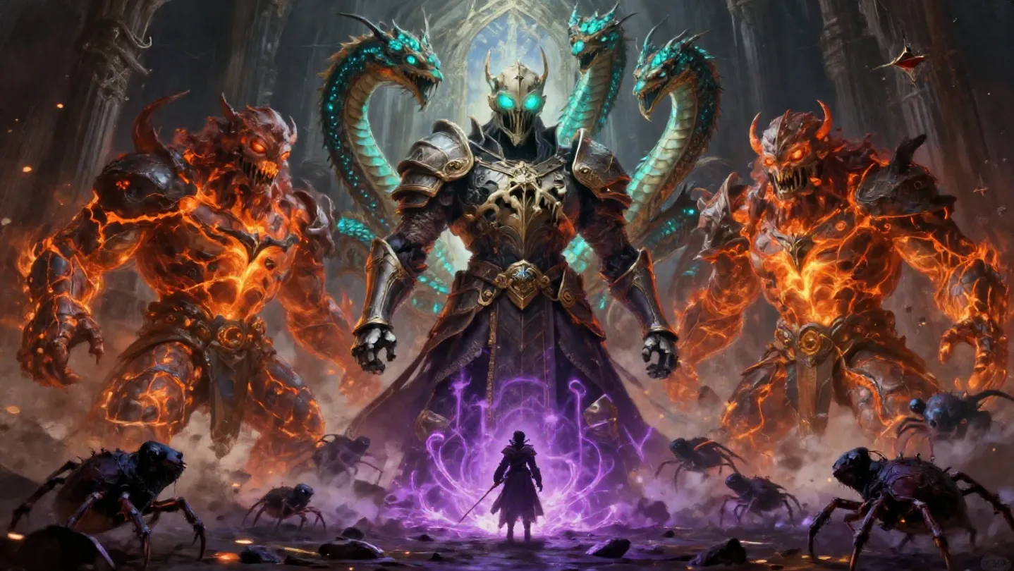 32 skills split between physical and magical. Equipment with damage bonuses and trophies with unique effects. Each hero has an exclusive passive that defines their playstyle. The Blacksmith transmutes your gear to adapt to any strategy.