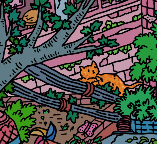 在充滿生機的綠影街裡,尋找可愛的貓咪。 你能找到牠們嗎?喵喵… 貓咪在呼喚你!