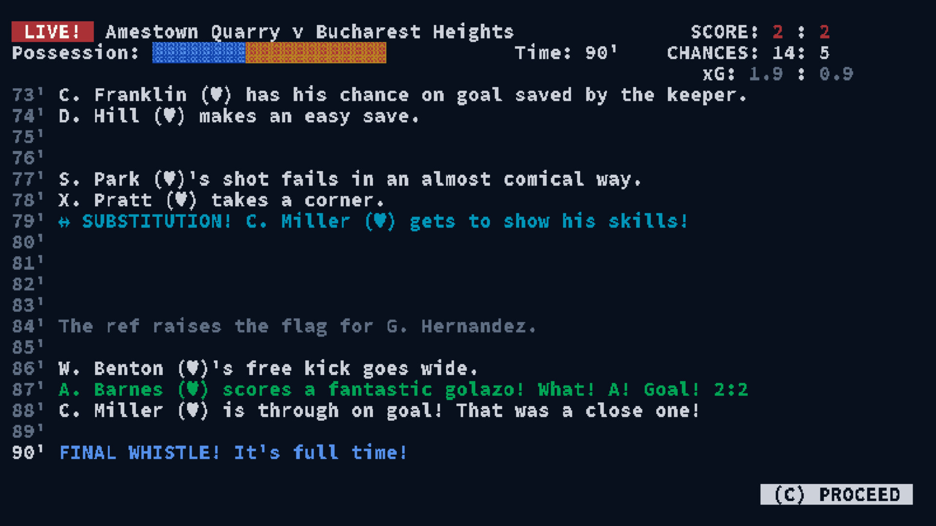 Text-based football management gameplay