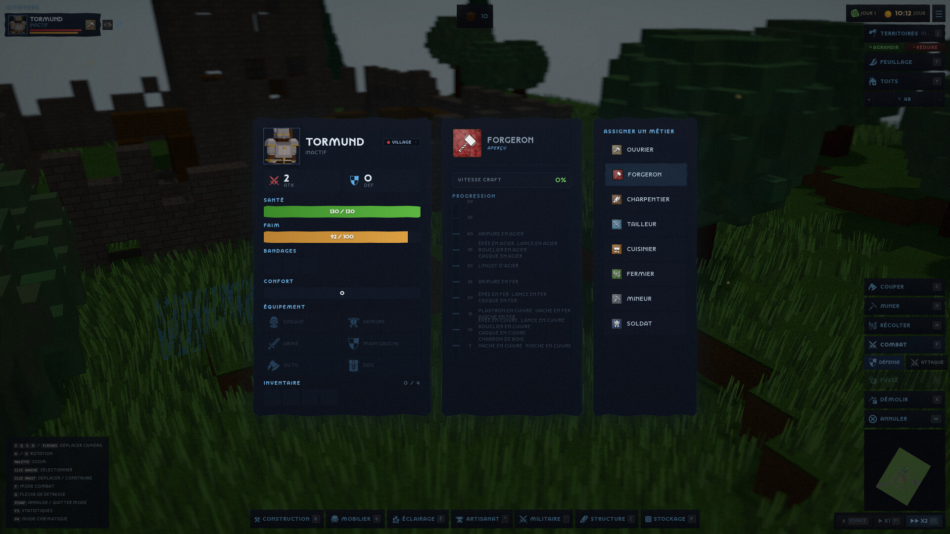 Jeder Bürger ist einzigartig, mutig oder feige, fleißig oder faul. Rüste sie mit geschmiedeter Ausrüstung aus, weise ihnen Aufgaben zu und sieh ihnen beim Leben zu. Sie fällen, bauen, fertigen, essen, schlafen und kämpfen selbstständig. Halte sie warm, satt und geschützt, oder verliere sie an die Kälte.