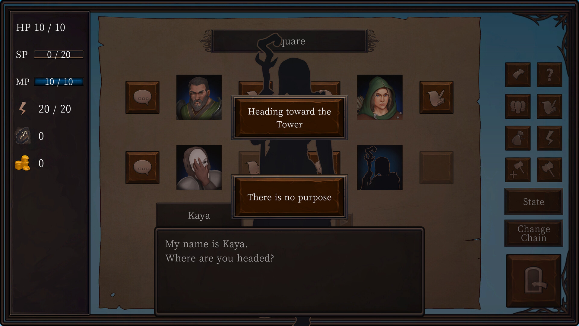 You may choose to talk, trade, or engage in battle, depending on the situation.