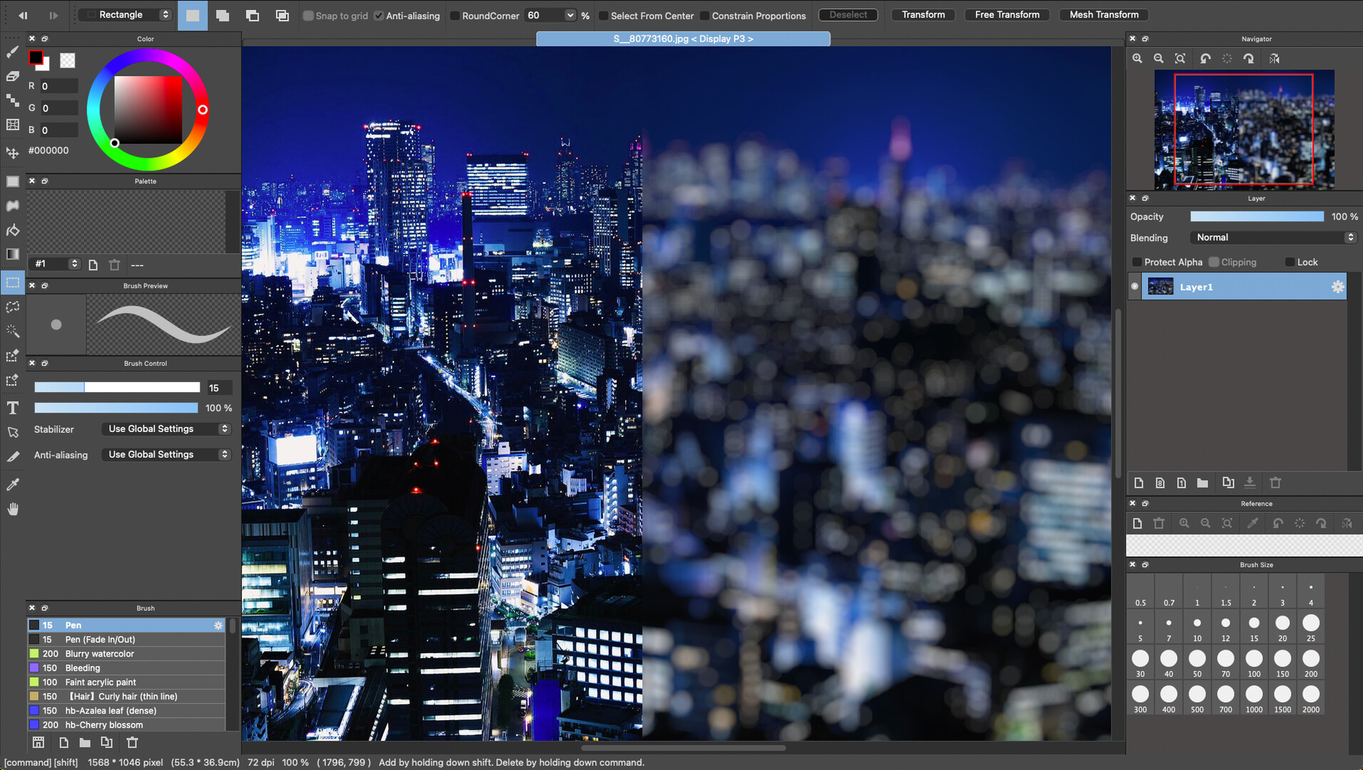 • Layer function (18 kinds of blend modes, clipping, layer folder)