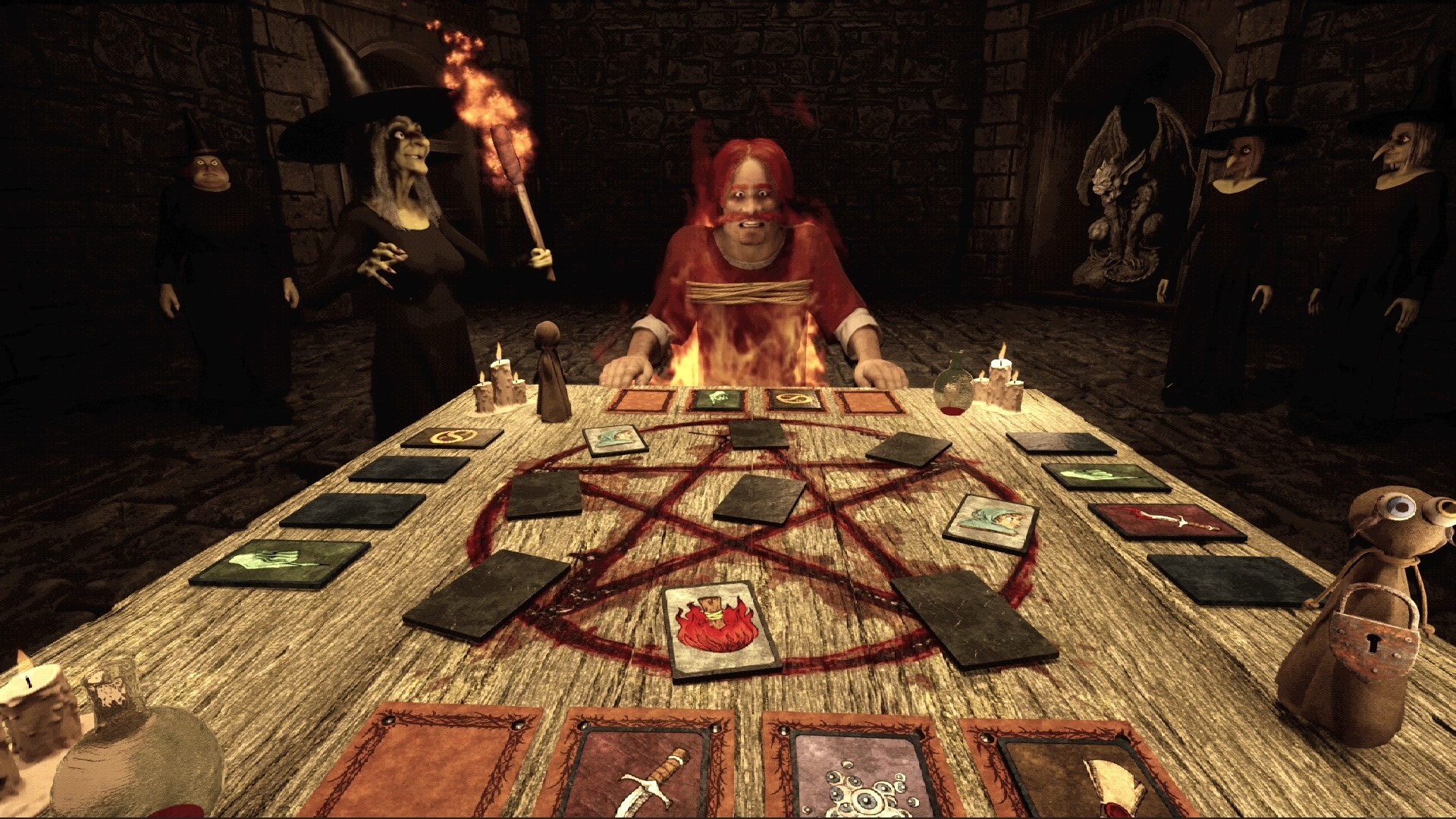 Survive the witches' deadly ritual in a tense strategy duel of chance and manipulation. Master the Verdict Tablets, collect charms and dark powers, outwit your opponent, or be marked for the stake.