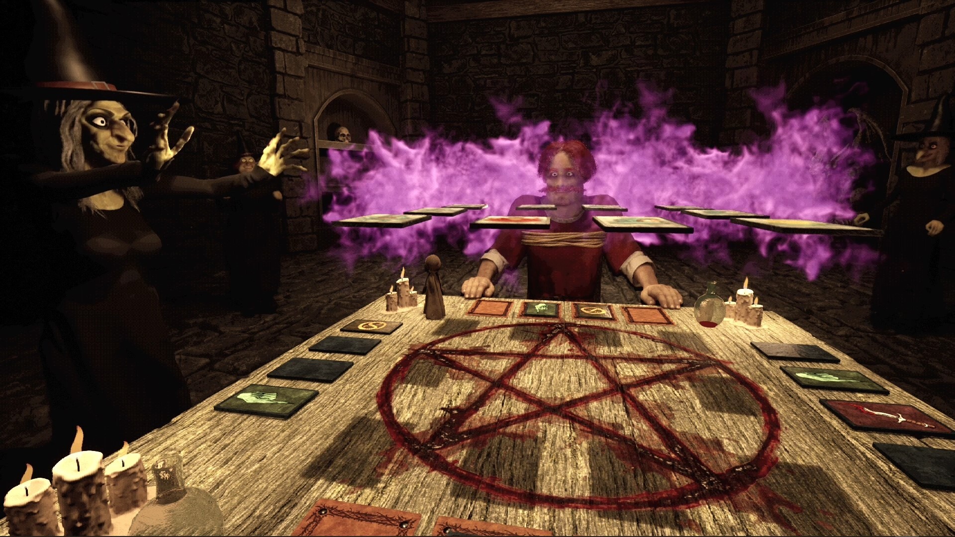 When the odds stack against you, bargain for Witches’ favors to tilt the odds or peer into the deck. But remember: Payment is in blood.