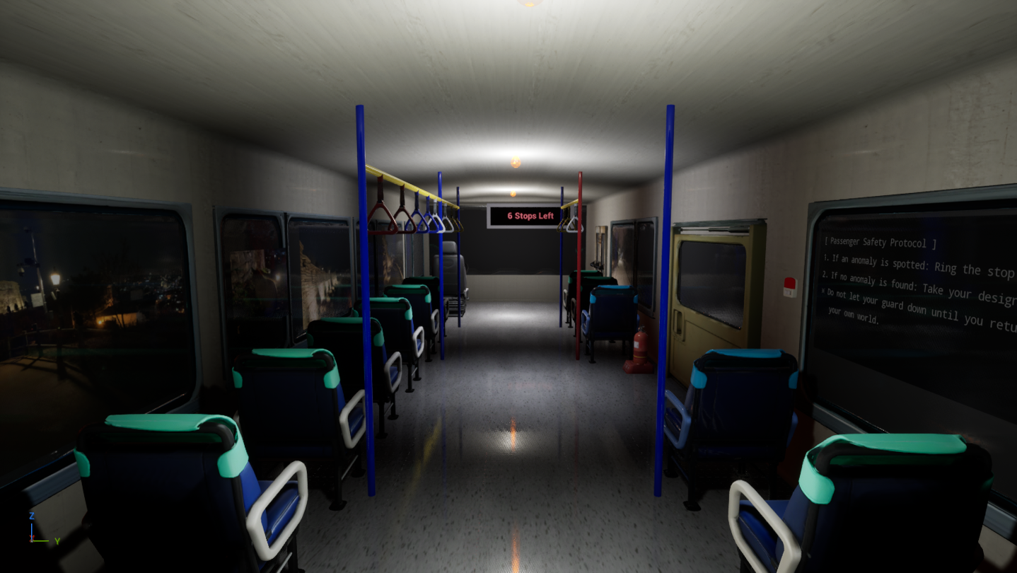 You are trapped on a bizarre bus traveling through the afterlife. Observe everything around you carefully and remember every detail.