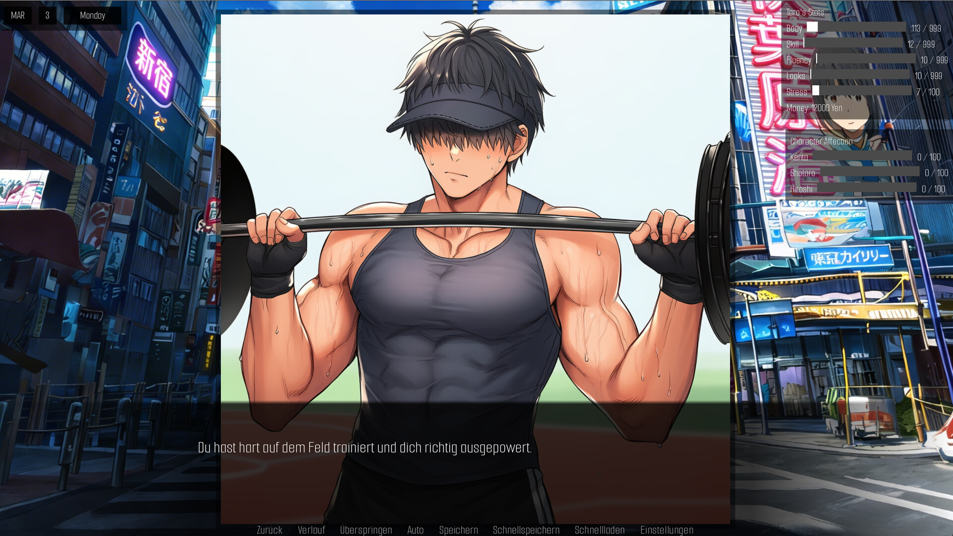 Bau Muskeln auf, verdiene schmutziges Geld und verliebe dich in heiße Athleten in Tokio. Eine dampfende BL-Sport-University-Life-Simulation mit intensivem Training, riskanten Nebenjobs und tiefen Romanzen-Routen. 18+ / Explizite sexuelle Inhalte