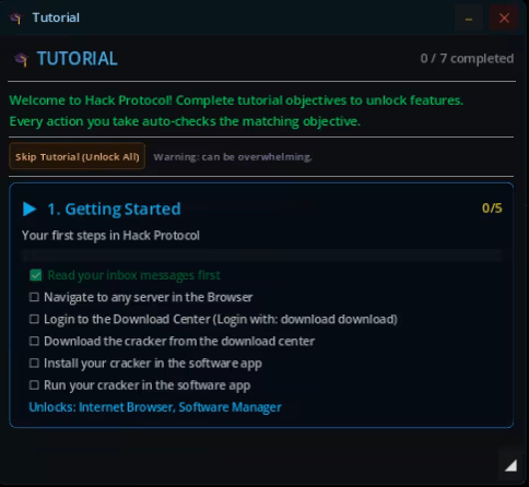 Never hacked before, not even in a game? No problem. A built-in step-by-step tutorial walks you through every mechanic, from your first server breach to deploying viruses and covering your tracks. A floating 3D Wiki Book lives on your desktop with searchable guides on every app, software type, and strategy.