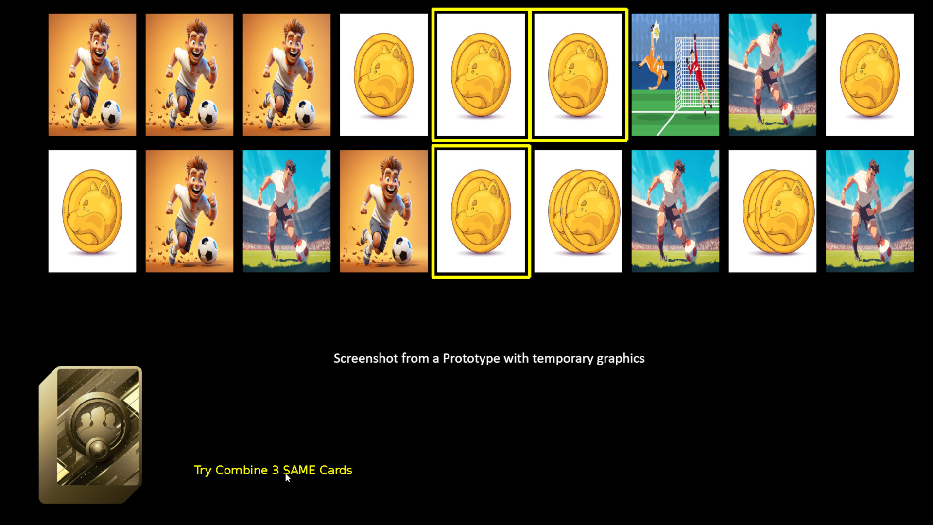 Build a deck, play against AI opponents - Win the Football (soccer) League! Get XP, and buy upgrades for next runs. Buy permanent cards between matches. This is at prototype stage only yet, and Final direction, story, graphics, have not been decided yet.