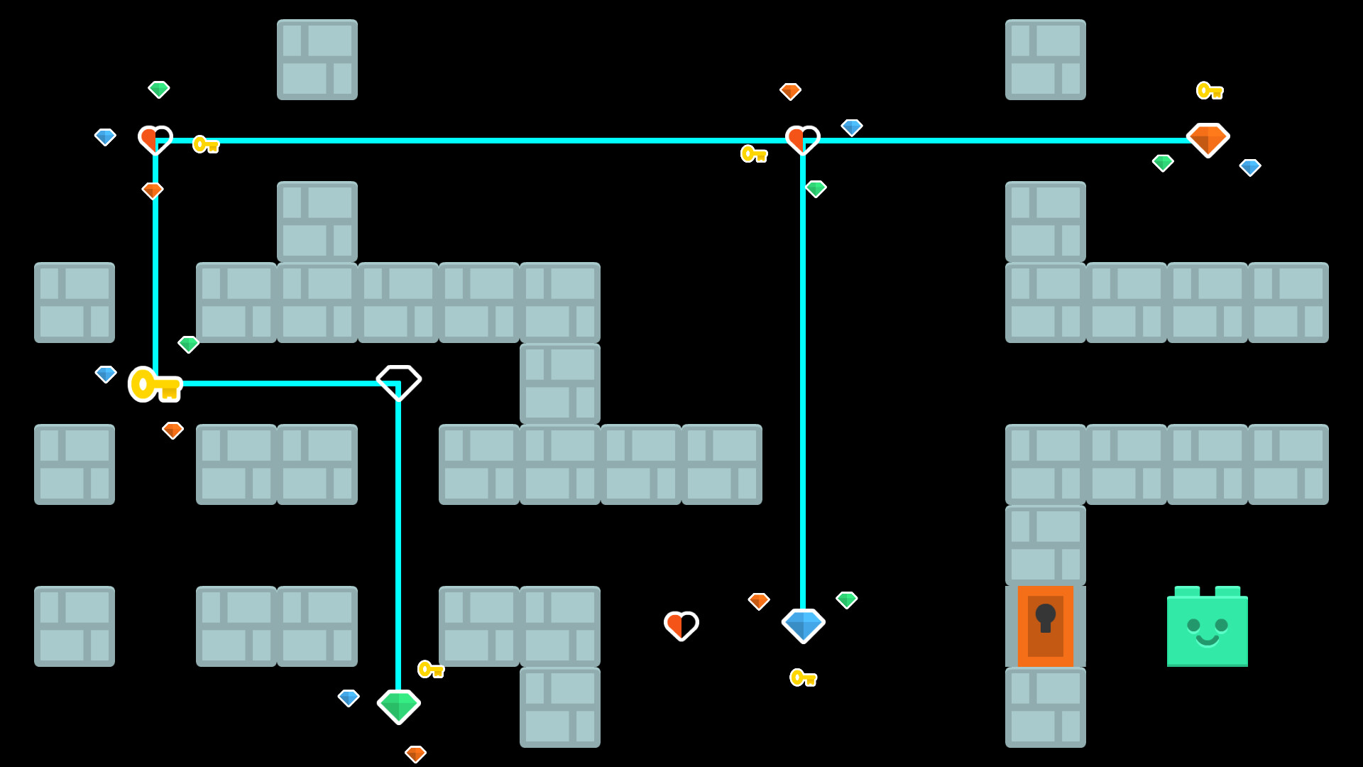 Connections are all you need to succeed. Link objects together to share and mix traits to create the tools you need to solve each level. Be careful which resource you spend where though, as each one is single use and you might need that piece later!