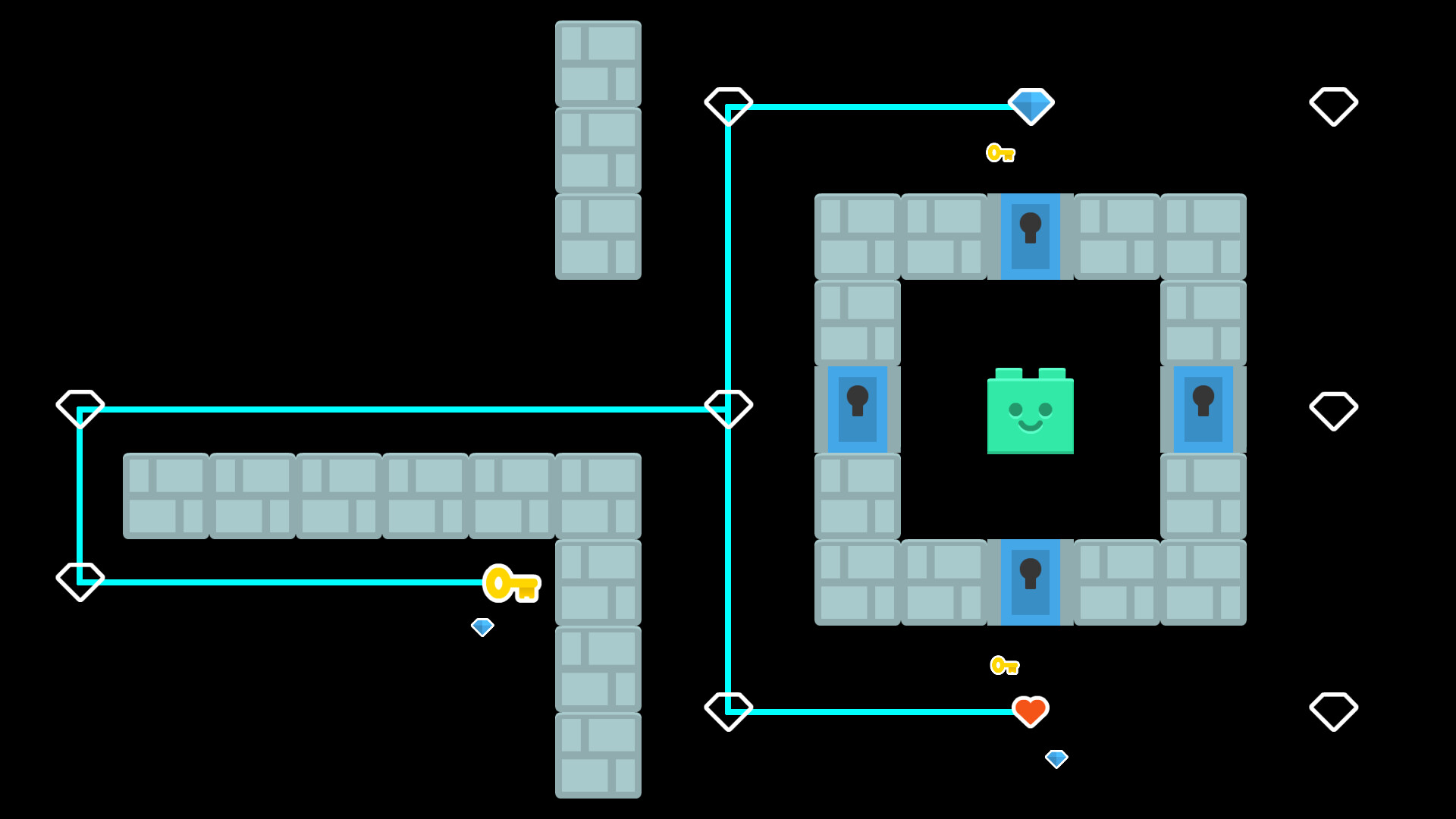 Connections are all you need to succeed. Link objects together to share and mix traits to create the tools you need to solve each level. Be careful which resource you spend where though, as each one is single use and you might need that piece later!