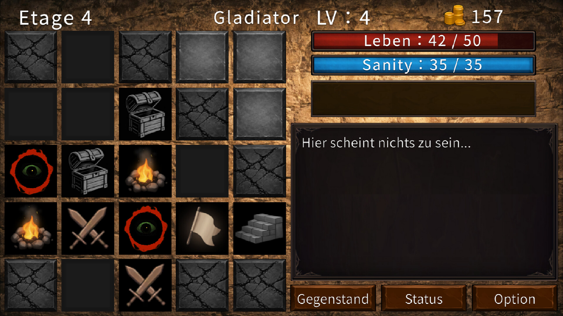 Ein Roguelike-RPG, in dem der Tod alles kostet. Erkunde einen Dungeon mit 5x5 Feldern, mit wechselnden Gegnern in jedem Durchlauf. In rundenbasierten Kämpfen entscheidet Strategie über das Überleben, und Wahnsinn raubt den Verstand. Meistere 40+ Klassen und erobere den Turm von Gand.