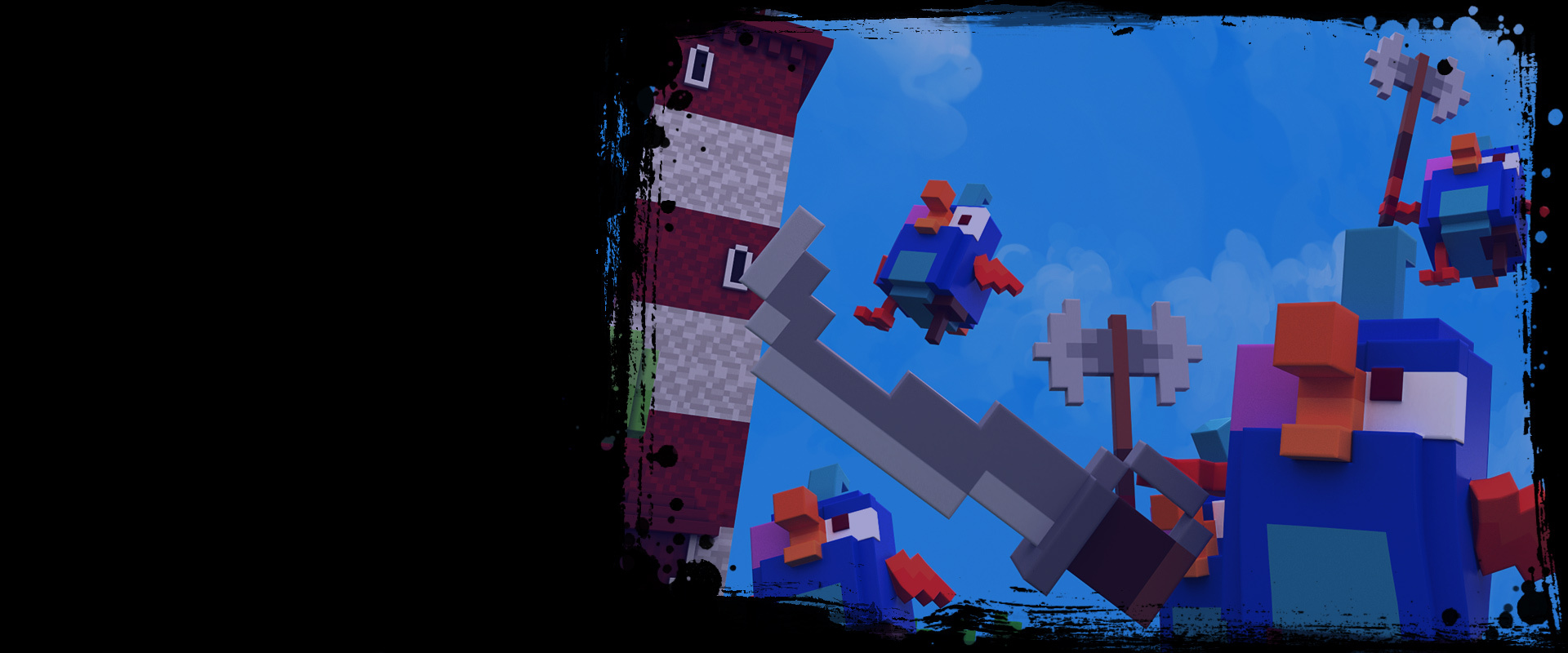 Did we mention that you can slash, smash and generally wreak havoc to the charming voxel environments? Go nuts if you want to and experience the awesomeness of real-time physics.