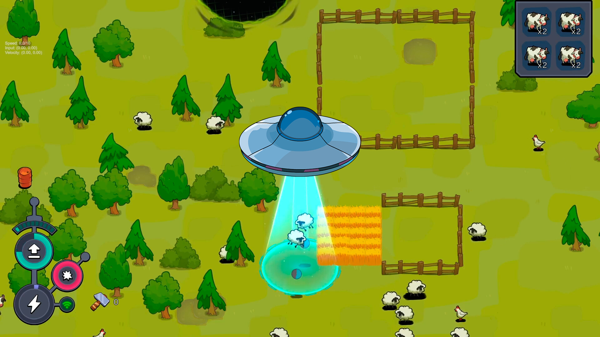 Vous êtes un OVNI. Cible : tout ce qui bouge et n'est pas fixé. Pilotez-le, semez le chaos, enlevez tout ! Rayon de gravité, physique de destruction, améliorations. Enlevez vaches, voitures, gens. La Terre n'est pas prête !