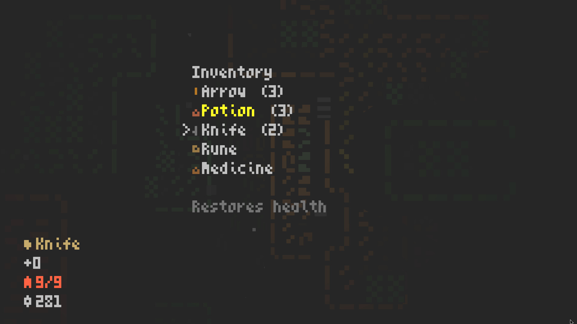 Runs - Every time the hero dies, the game resets and a different path will guide you through the wilderness.
