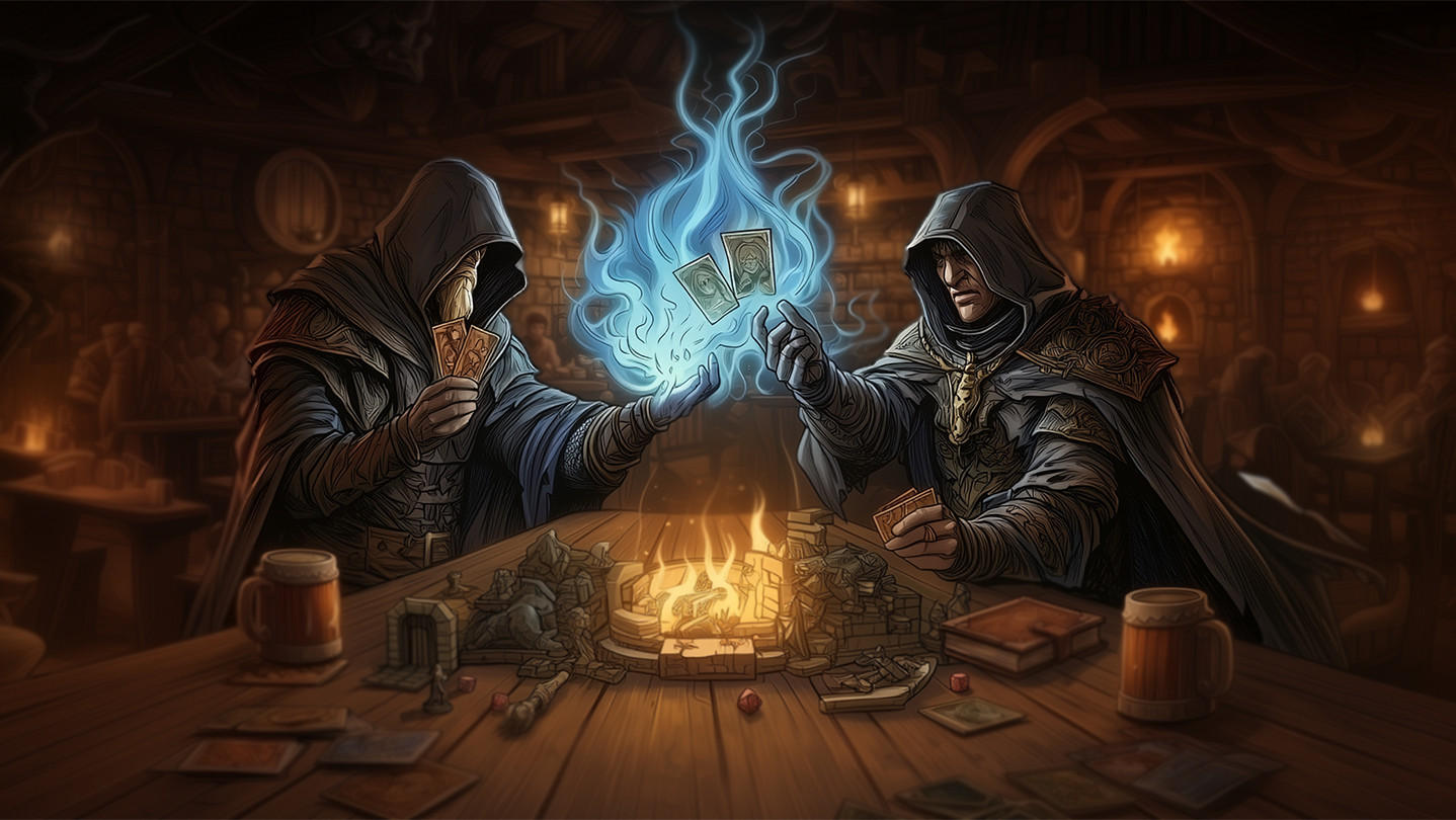Each game unfolds across different table setups and evolving scenarios within the tavern.