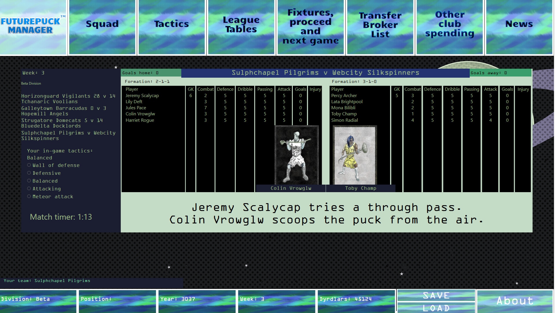 FuturePuck Manager™ is a sci-fi sports management simulator set in a humanity-settled star system in the year 3037, putting players in the hotseat to guide their team to glory. Assemble your squad from an array of species in your bid to conquer the Alpha League or claim victory in the Wondrous Cup.
