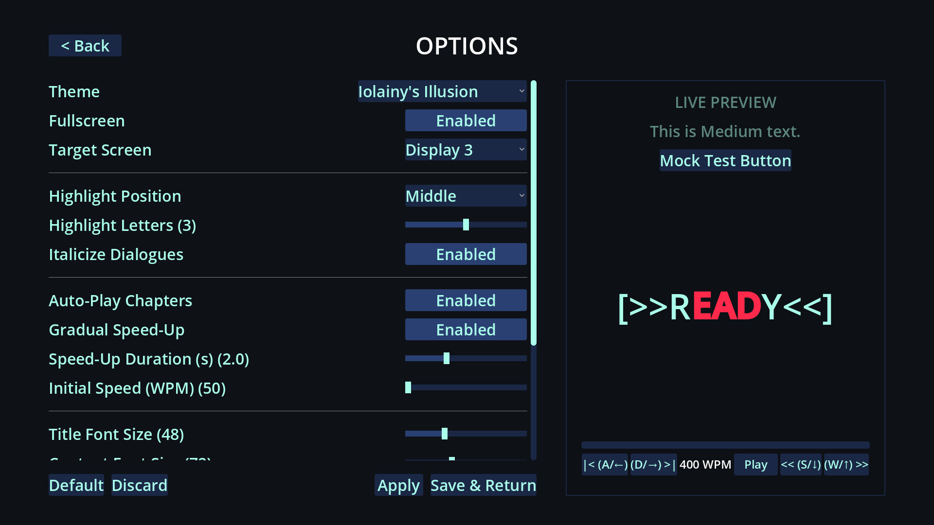 • Optical Customization: Tailor the visual feed to your specific needs. Adjust font scaling, highlight letter positioning, and choose from multiple curated interface themes—from crisp Daylight, to vintage Monochrome Archives.