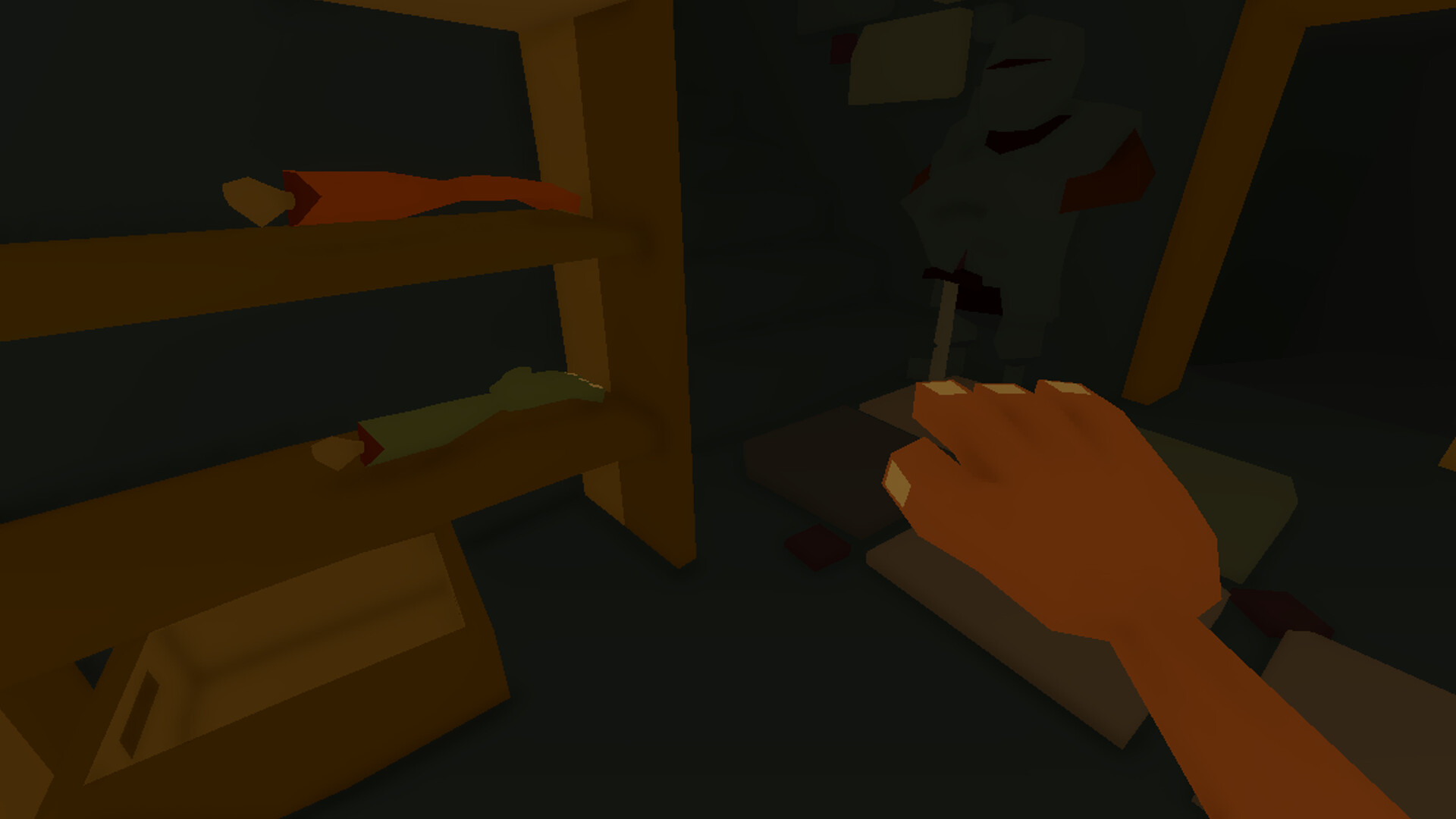 A stylized, low-poly world filled with odd details: flickering torchlight, cluttered shelves, and a constant sense that something isn’t quite right.
