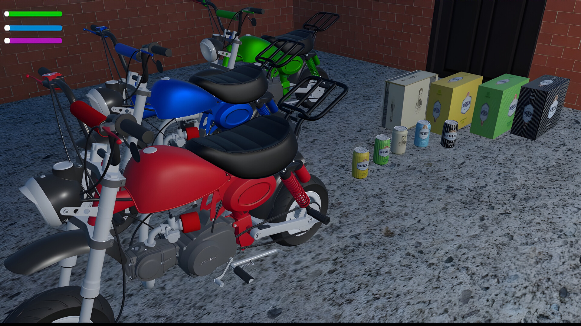 In the center, you can buy things like energy drinks, cigarettes (if you dare to try), new clothes, or moped parts for tuning. In the evenings, the town comes alive—people hang out in parking lots, music is playing, and there’s always something to do… or trouble to get into.
