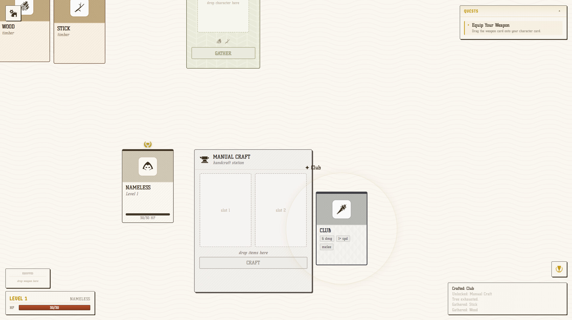RPG idle cu cărți pe o masă. Trage cărțile una peste alta pentru a face literalmente orice. Peste 200 de rețete de arme (doar ~40 merită păstrate), 140 de evoluții ale creaturilor, 12 clase de prestigiu. Și totuși arată ca un instrument de planificare care a prins viață.