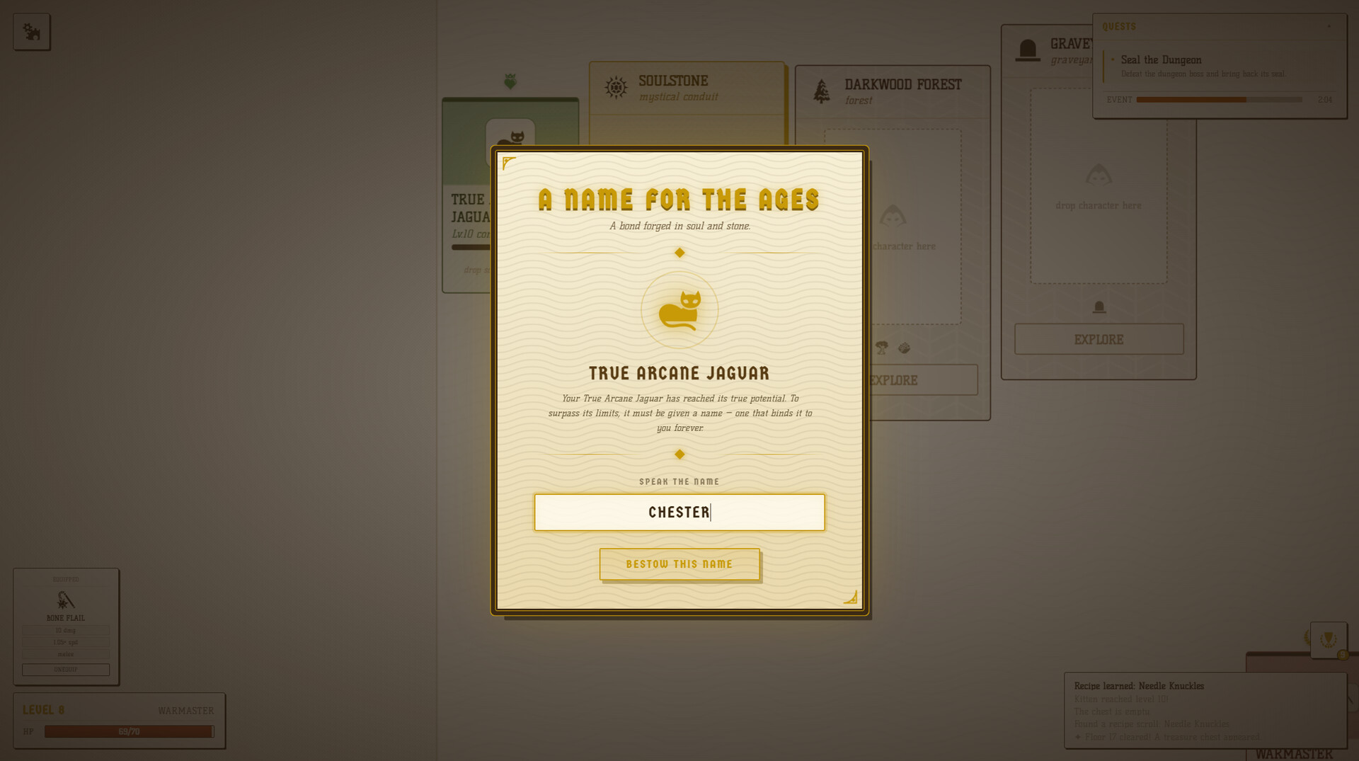 Idle card RPG on a table. Drag cards onto each other to do literally everything. 200+ weapon recipes (only ~40 are worth keeping), 140 pet evolutions, 12 prestige classes. Yet still feels like a Jira and Trello child.