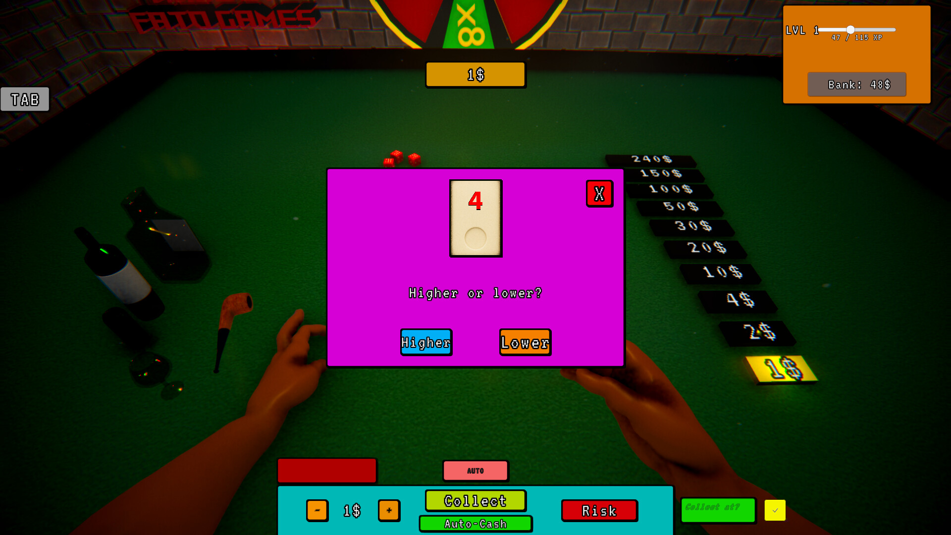 This game simulates mechanics often found in gambling, such as coin flipping, risk-taking, and chance-based progression. While no real money is involved and there are no real-world financial stakes, the game is designed to simulate the thrill and 'high-stakes' feeling of gambling. For this reason, it may not be suitable for children or individuals who are sensitive to gambling-related mechanics.