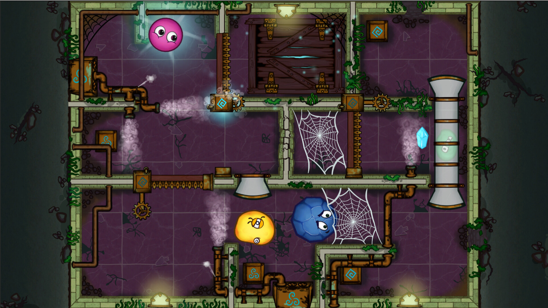 Bobbobs: The Crystal Quest is a top-down co-op puzzle game where four