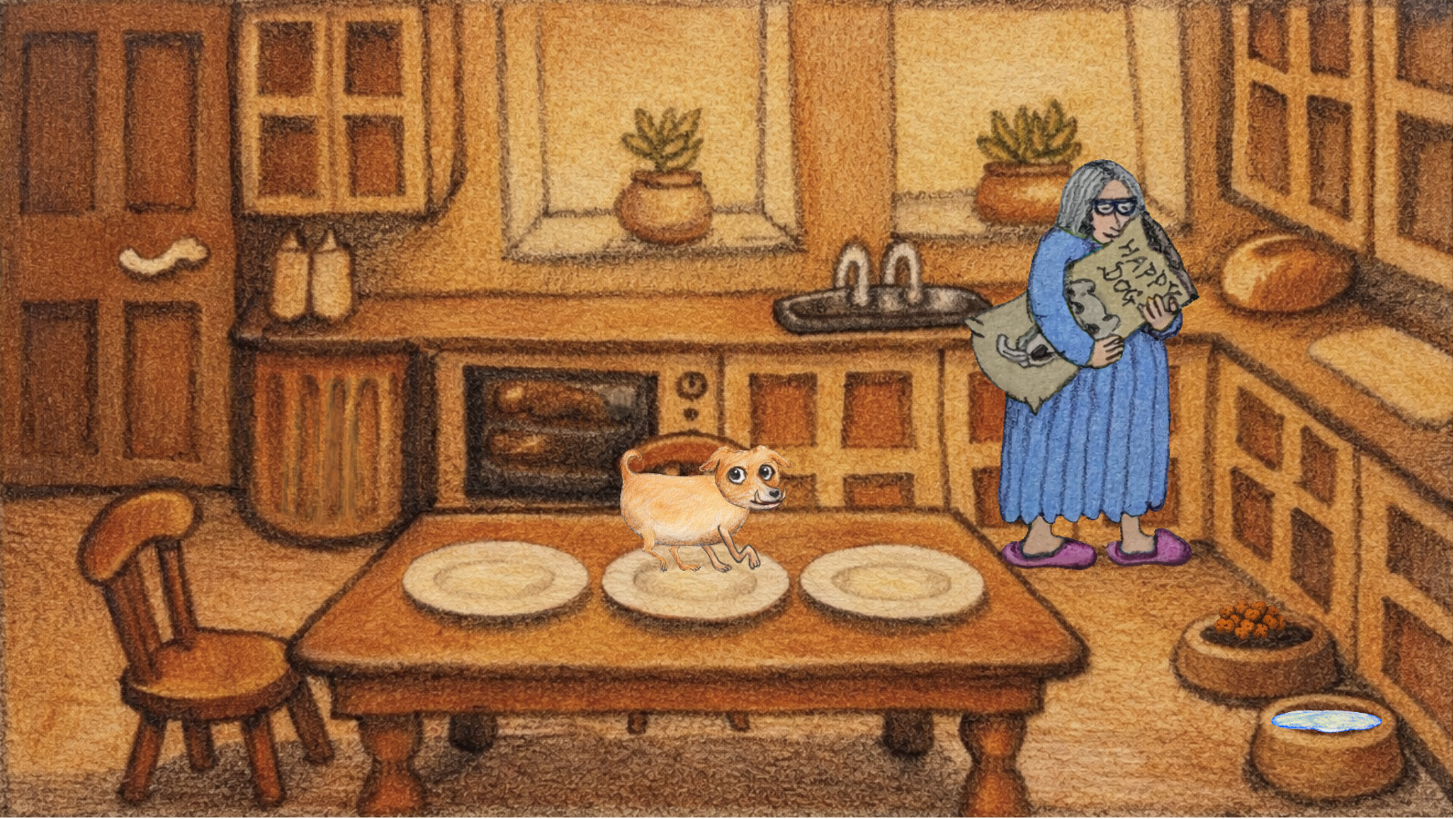 Pudding the jug is a story telling game about a cute little dog.