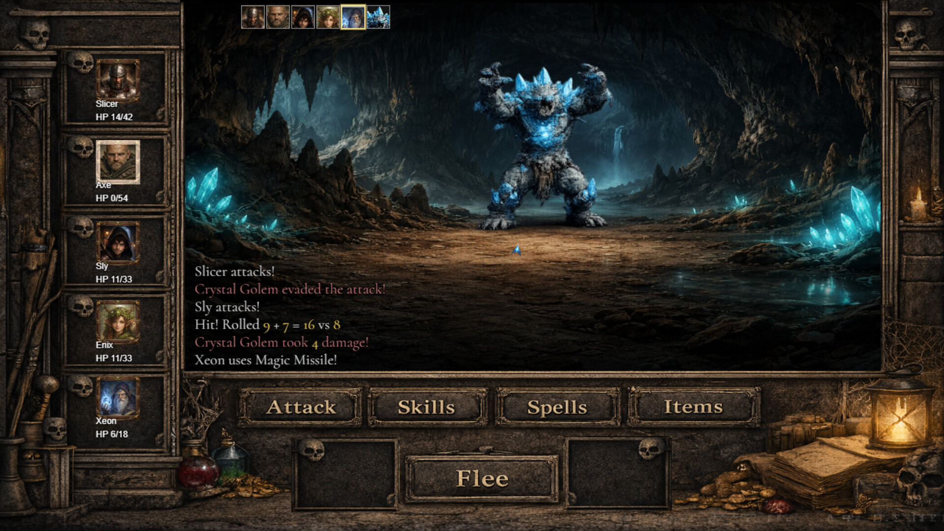 • Build Your Party: Create and develop a group of unique adventurers, each contributing to your success in combat and exploration.