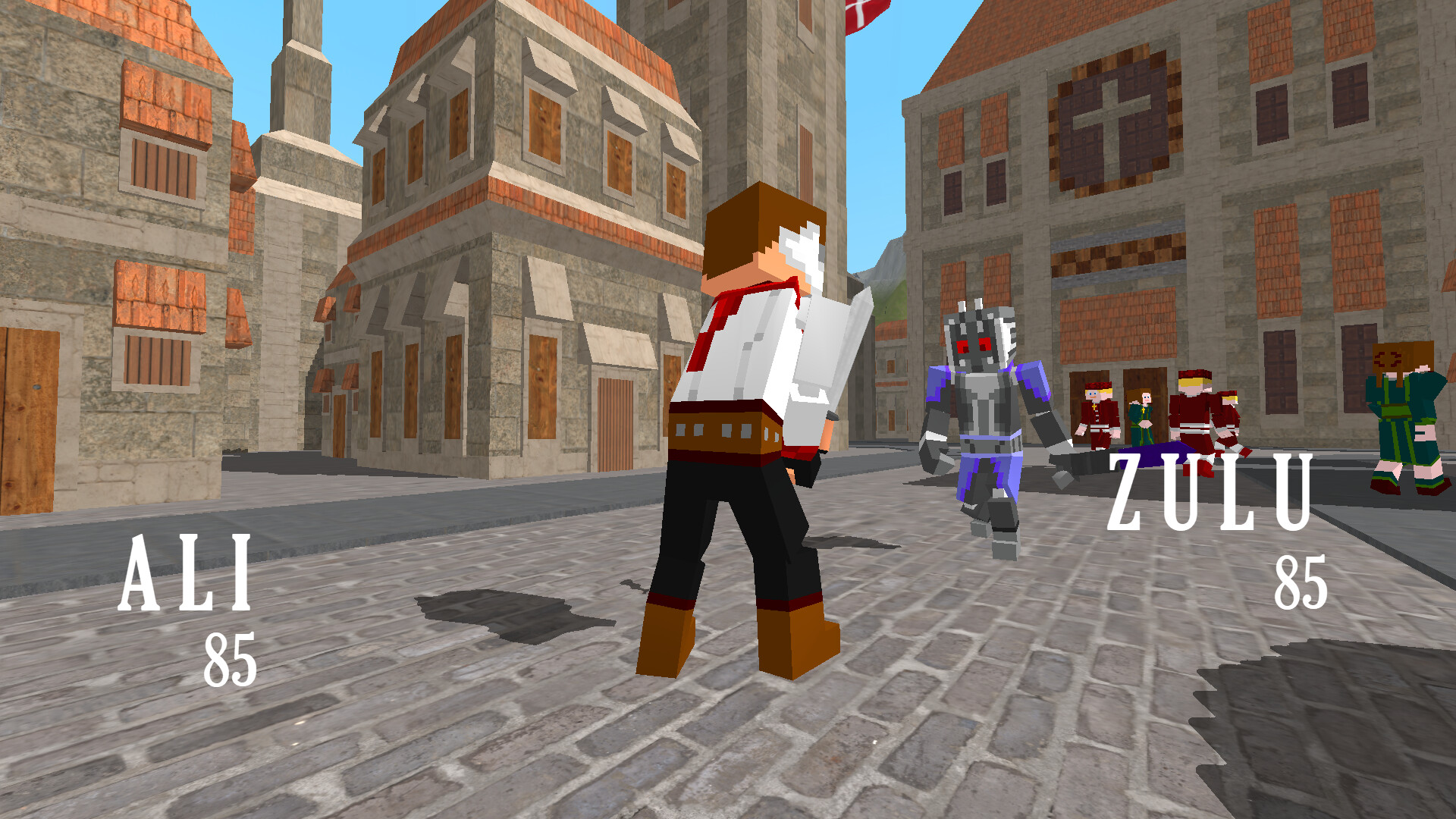 Combat System is real-time fast-paced but accessible, with attacking, and closing distance in arena-like spaces with simple health bars appear for both fighters (e.g. "ALI 95" vs. "ZULU 65" ). Fights take place in fully 3D environments.