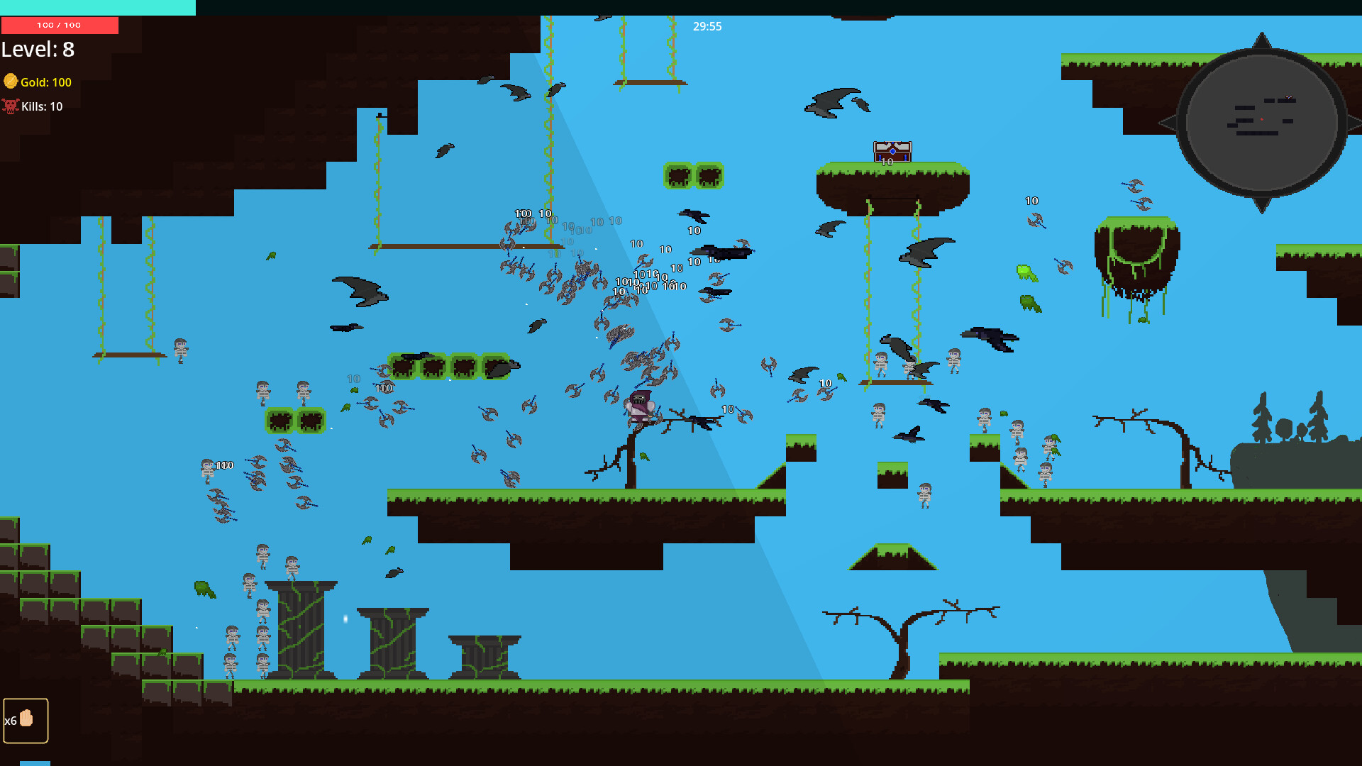 ClumpHunter is a fast-paced 2D roguelite platformer where you fight through waves of enemies in action-packed levels. Collect loot influenced by your luck, level up your stats, and combine upgrades to create powerful builds.