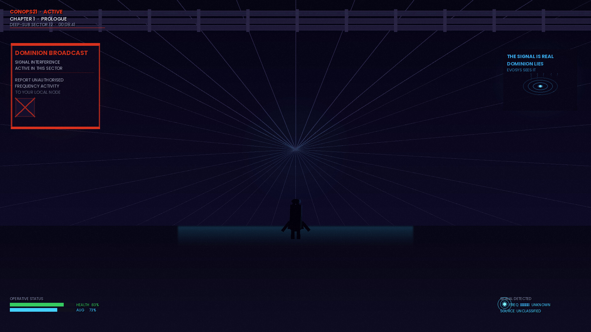 • The novel exists alongside the game. ConOps21: Subversion Protocol: Book One — Black Signal available now on Amazon.  Same world. Same characters. Different medium. Each goes deeper into different rooms of the same architecture. Neither requires the other.